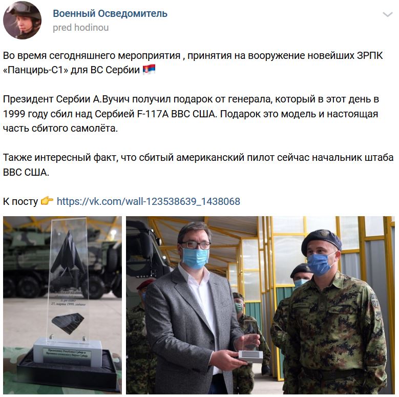 Pri uvedenej príležitosti prezident Srbska Vučič od terajšieho generála dostal dar a to kúsok zostreleného lietadla F-117 (rok 1999) a jeho model. Kuriozita je, že aj vtedy zostrelený pilot je teraz náčelníkom štábu USAF.