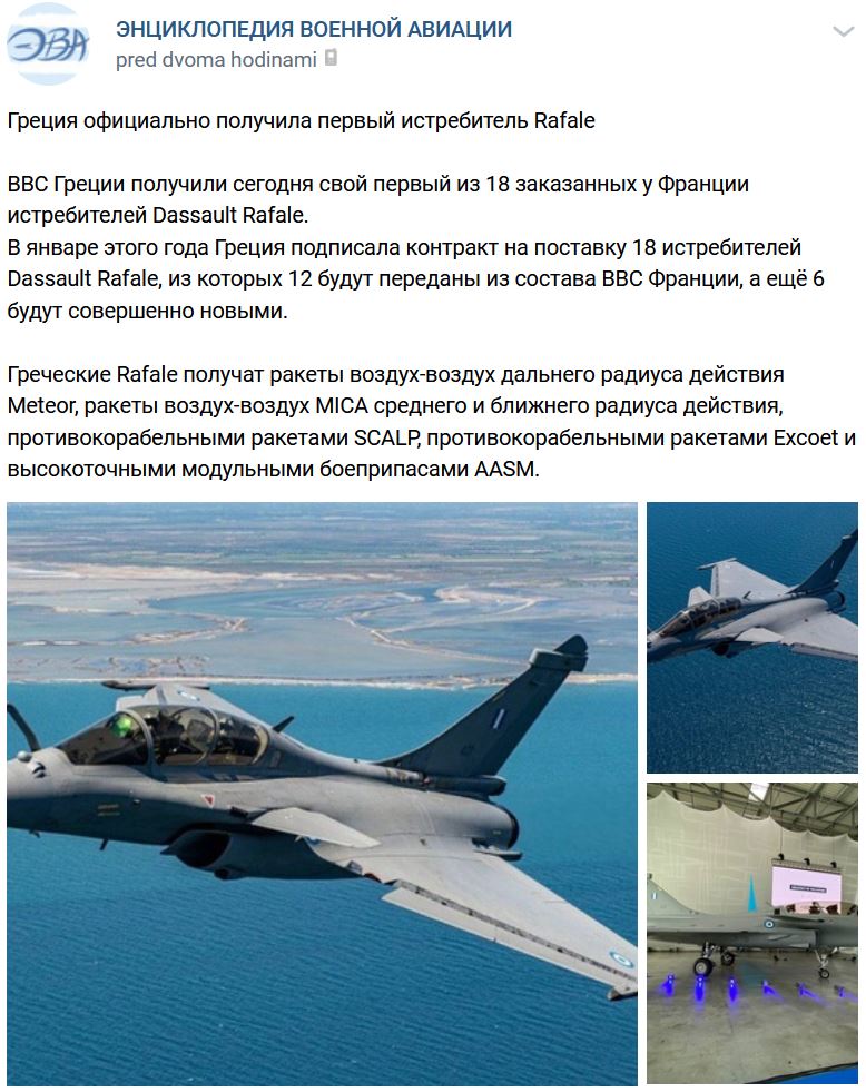 V pondelok 25.01.2021 v Aténach predstaviteľ Gréckeho ministerstva obrany a predstaviteľ firmy Dassault Aviation podpísali zmluvu na dodanie 18 lietadiel rodiny Dassault Rafale. Z toho 12 lietadiel bude prevedených z francúzskeho letectva (FR si dá vyrobiť nové) a 6 lietadiel bude novo vyrobených Dassault Rafale série F3-R. Dodanie lietadiel začne od leta 2021 do 26 mesiacov od podpísania zmluvy (teda do 25.03.2024):
