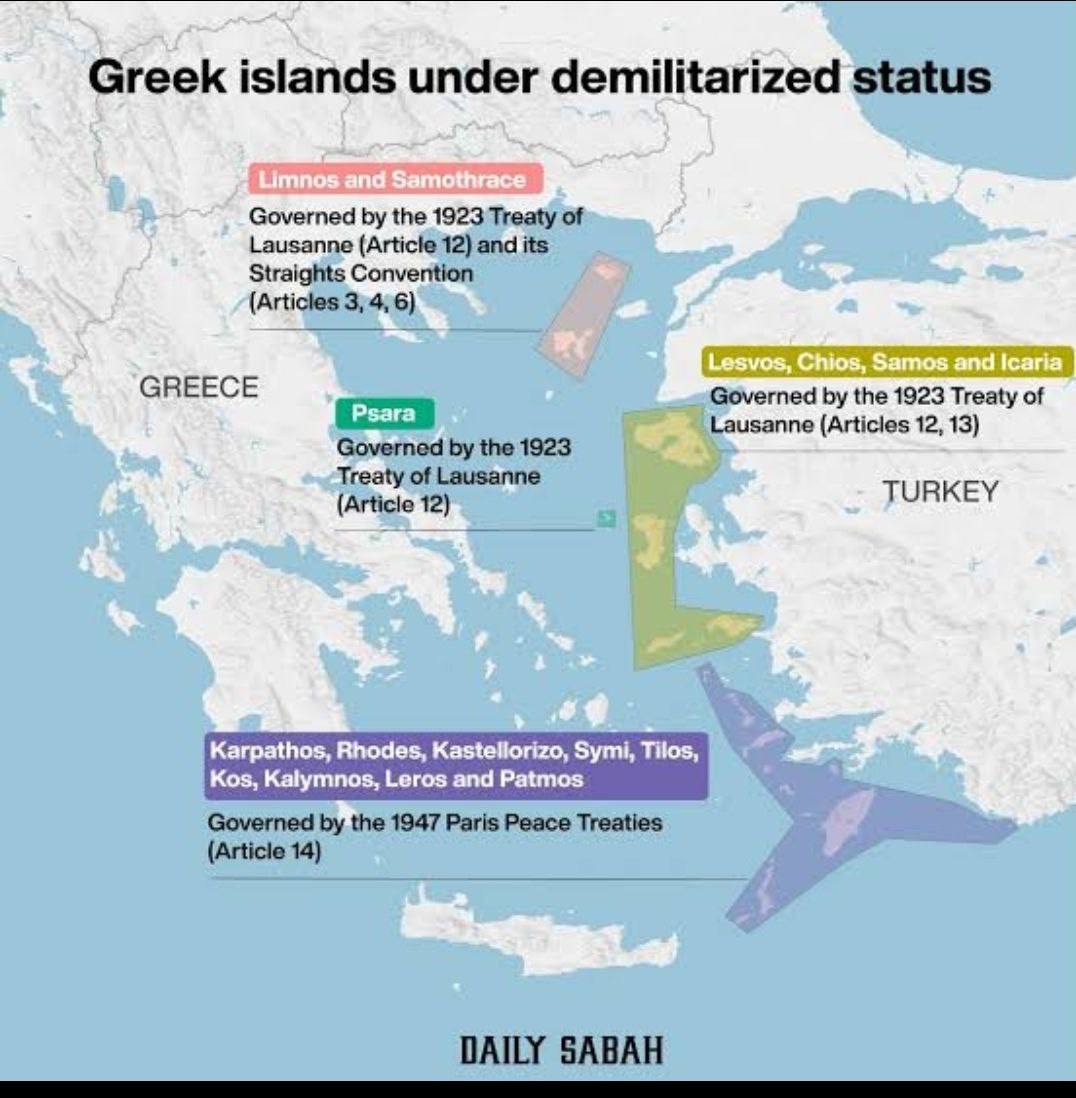 USA dodajú Grécku stíhačky F-35A za určitých podmienok. Podľa Lausannskej a Parížskej zmluvy grécke lietadlá nemôžu lietať ani nad demilitarizovanými ostrovmi. Do prístavov na demilitarizovaných ostrovoch nemôžu vplávať ani ozbrojené lode