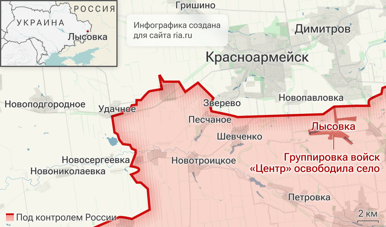 „V dôsledku rozhodných akcií jednotiek skupiny síl Stred bola oslobodená osada Lysovka v Doneckej ľudovej republike,“ uvádza sa v správe.