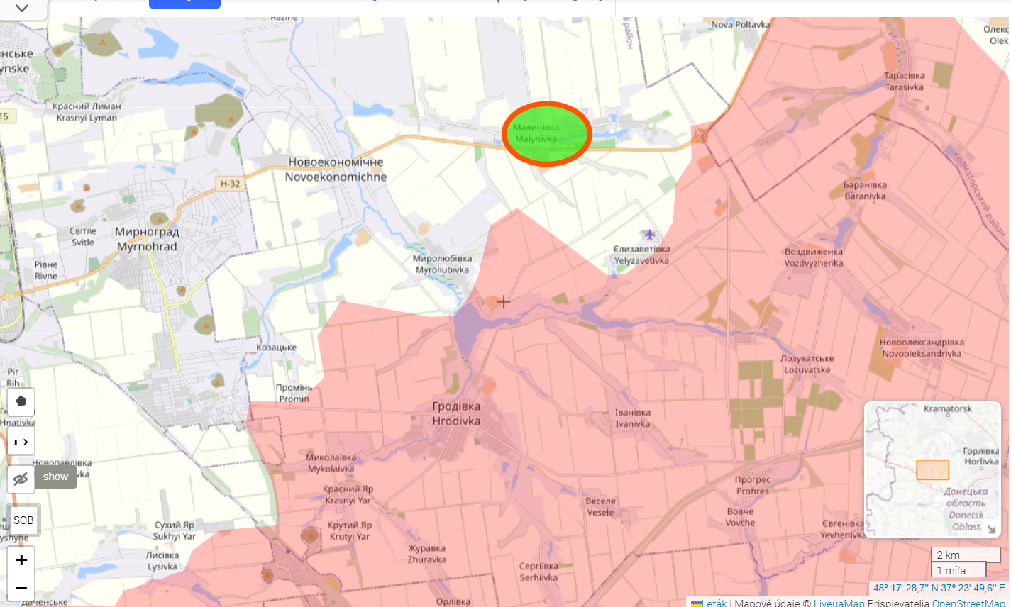 Vztyčovanie ruskej vlajky v oslobodenej obci Malinovka a zajatí ukrajinci, Pokrovský smer, dnes: