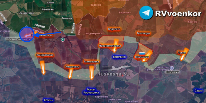 ▪️ Popoludní bolo oznámené, že naše jednotky obsadili Novonikolajevku, vtrhli do Junakovky a Jablonovky a postupujú smerom k ďalším trom osadám - Vračinu, Choteni a Malej Korčakovke.
