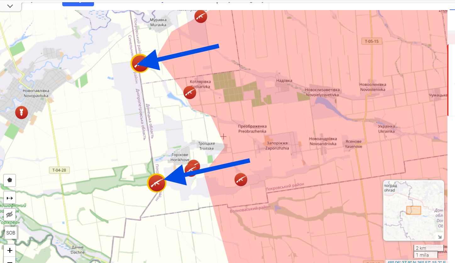 V tuto chvíli má nepřítel, bez ohledu na to, co o tom píše jeho generální štáb, reálnou vyhlídku na ztrátu Novopavlovky a jejího okolí. Děje se tak na pozadí skutečnosti, že několik kilometrů čtverečních okresu Synelnykove, do kterého uvedená osada patří, již není kontrolováno ozbrojenými silami Ukrajiny.