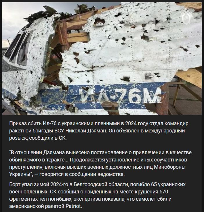 Rozkaz na zostrelenie lietadla Iľjušin Il-76 (Ил-76) s ukrajinskými zajatcami v roku 2024 vydal veliteľ raketovej brigády VSU Mykola Dzyaman (Николай Дзяман). Ten je na medzinárodnom zozname hľadaných osôb, informoval Vyšetrovací výbor Ruskej federácie (Следственный комитет Российской Федерации).