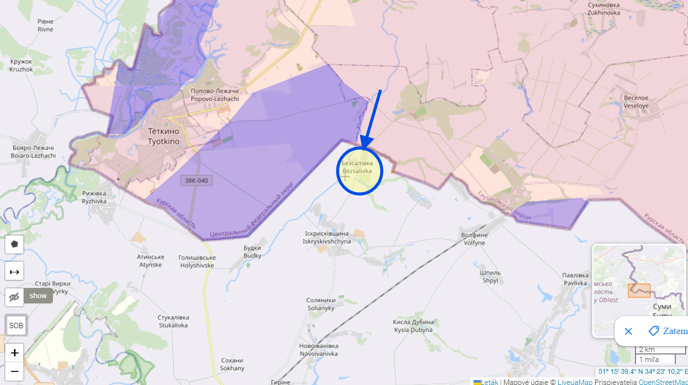 Ruské ministerstvo obrany vyhlásilo úplnú kontrolu dediny Bezsalivka v Sumskej oblasti Ukrajiny