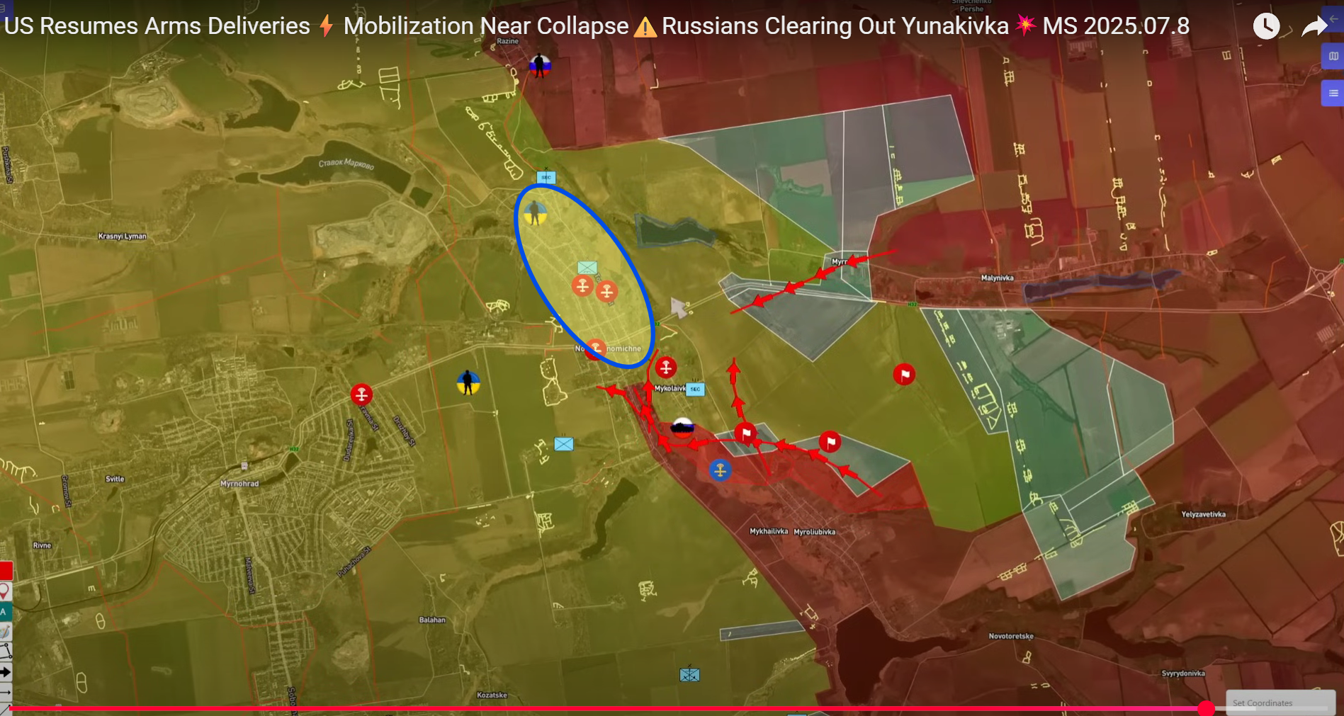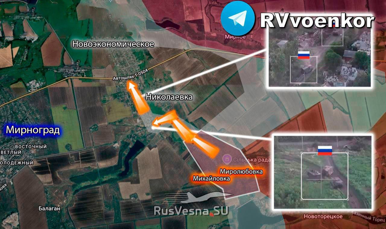 ▪️ Mechanizovaná kolóna obrnených vozidiel skupiny Stred prerazila z Miroljubovky a zaútočila na Novoekonomičeskoje na okraji Mirnogradu (smer Pokrovskoje).