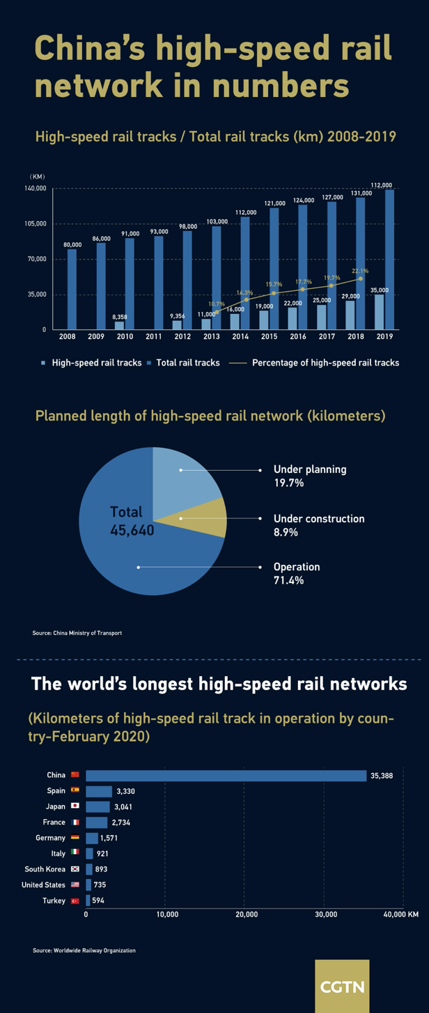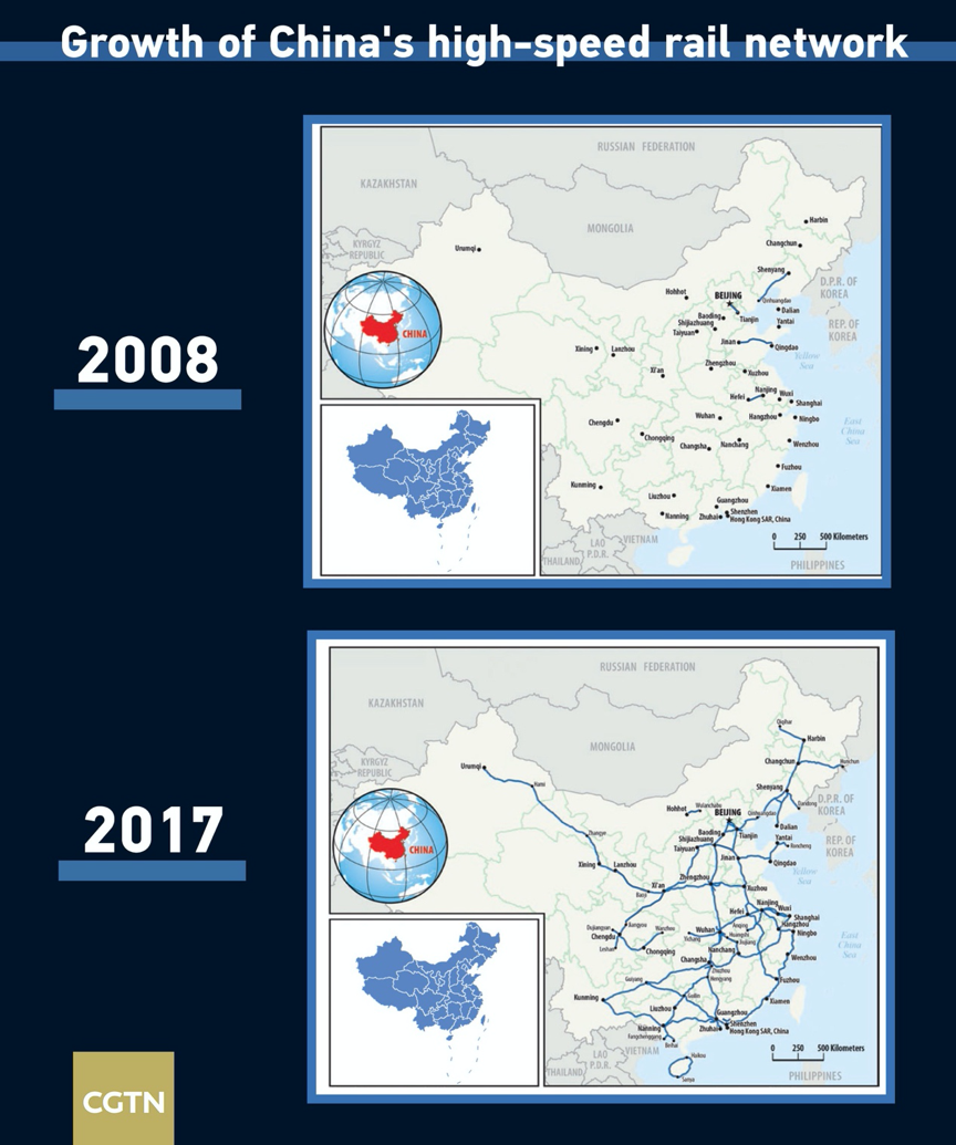 Během uplynulého desetiletí přidala tato země ke své síti vysokorychlostních železnic (HSR) více než 35 000 kilometrů, kdy jejich celková délka teď už převyšuje celý zbytek světa dohromady. Rychlosti vlaků vyrostly z maximálně 200 km za hodinu na 350 km za hodinu – tj. jsou nejrychlejší na světě.