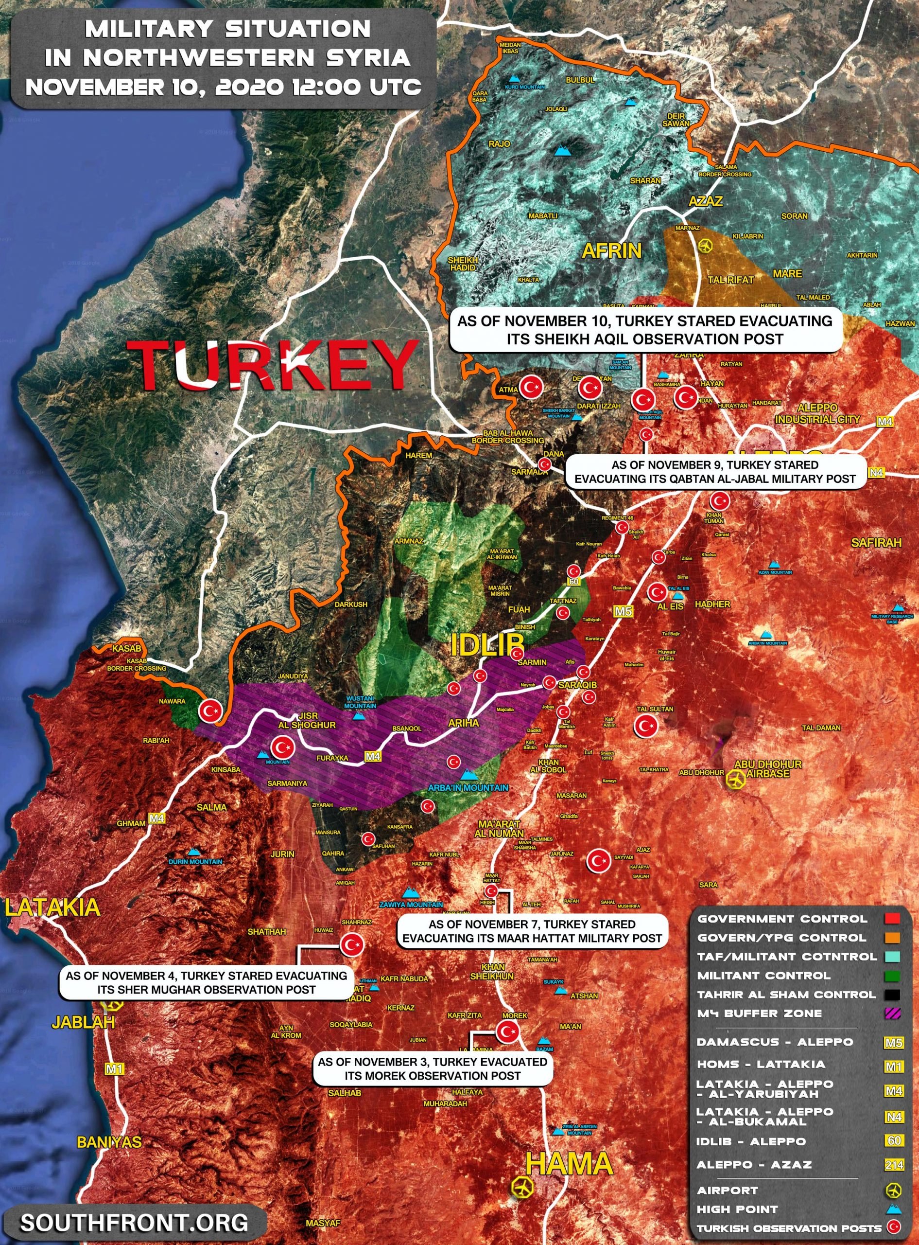 Od začiatku novembra začala armáda Turksih znižovať počet svojich vojenských pozícií a pozorovacích miest v sýrskom Veľkom Idlibe: Od 10. novembra Turecko začalo: