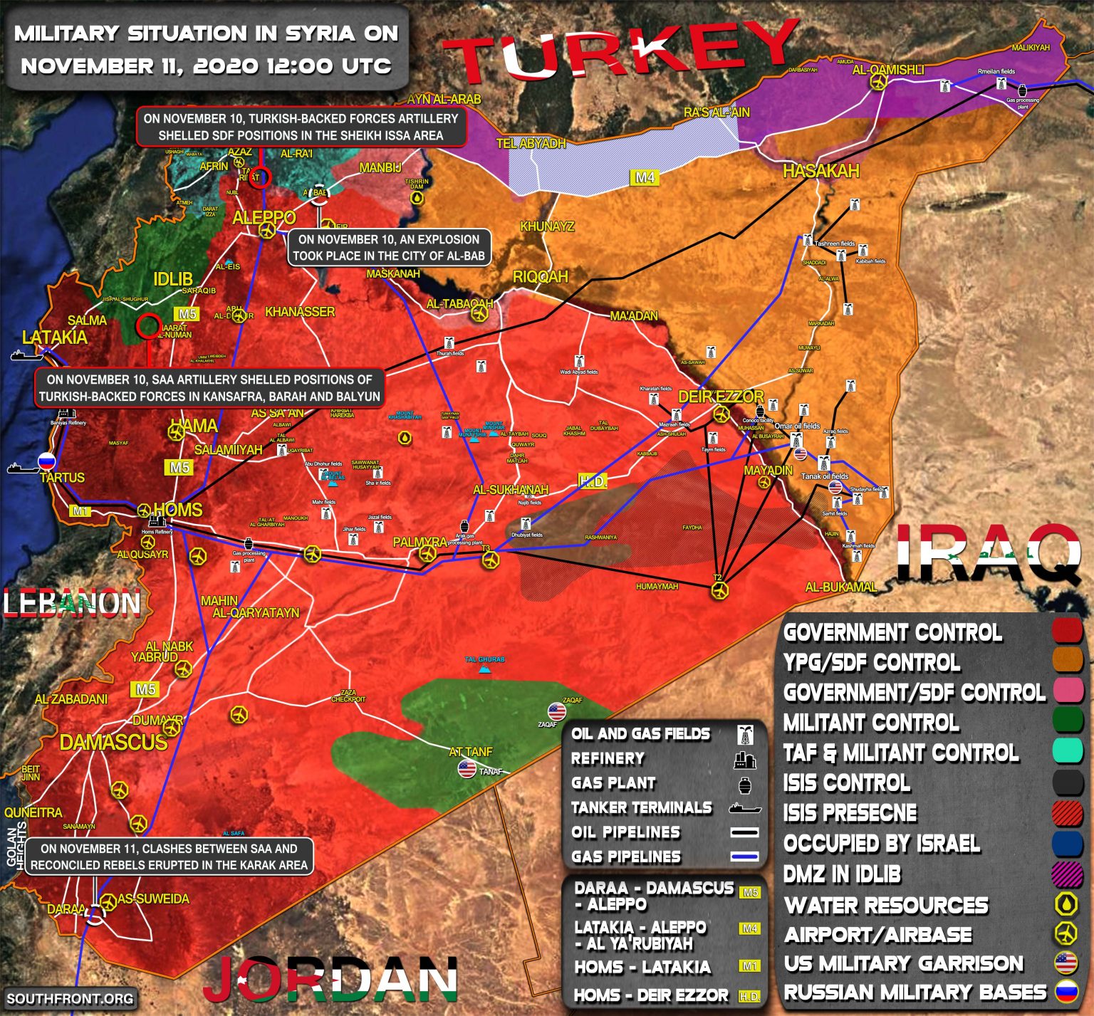 11. novembra v oblasti Karaku prepukli strety medzi Sýrskou arabskou armádou (SAA) a zmierenými povstalcami;