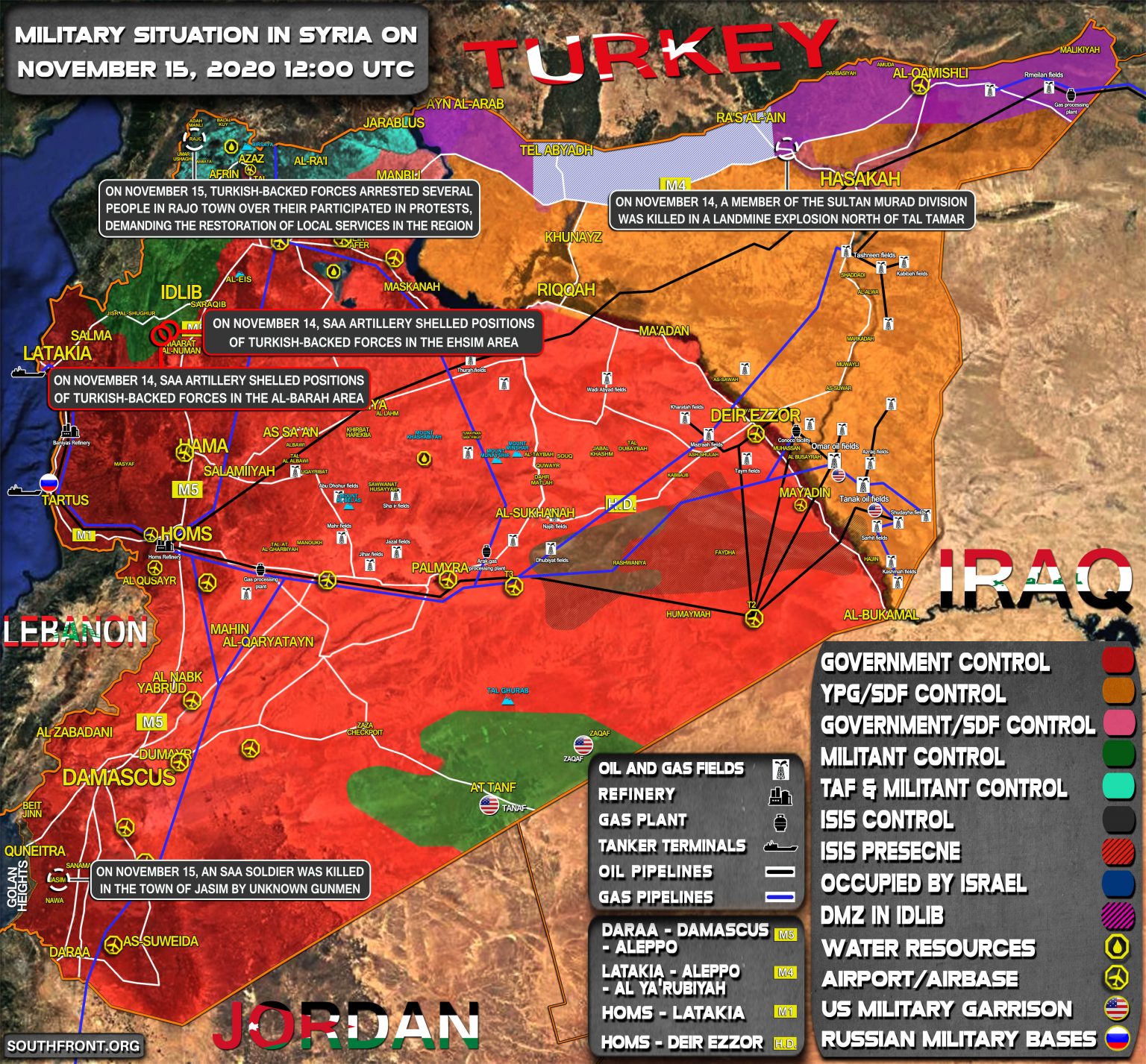 15. novembra útok IED poškodil vozidlo sýrskej arabskej armády (SAA) neďaleko mesta al-Tabni;