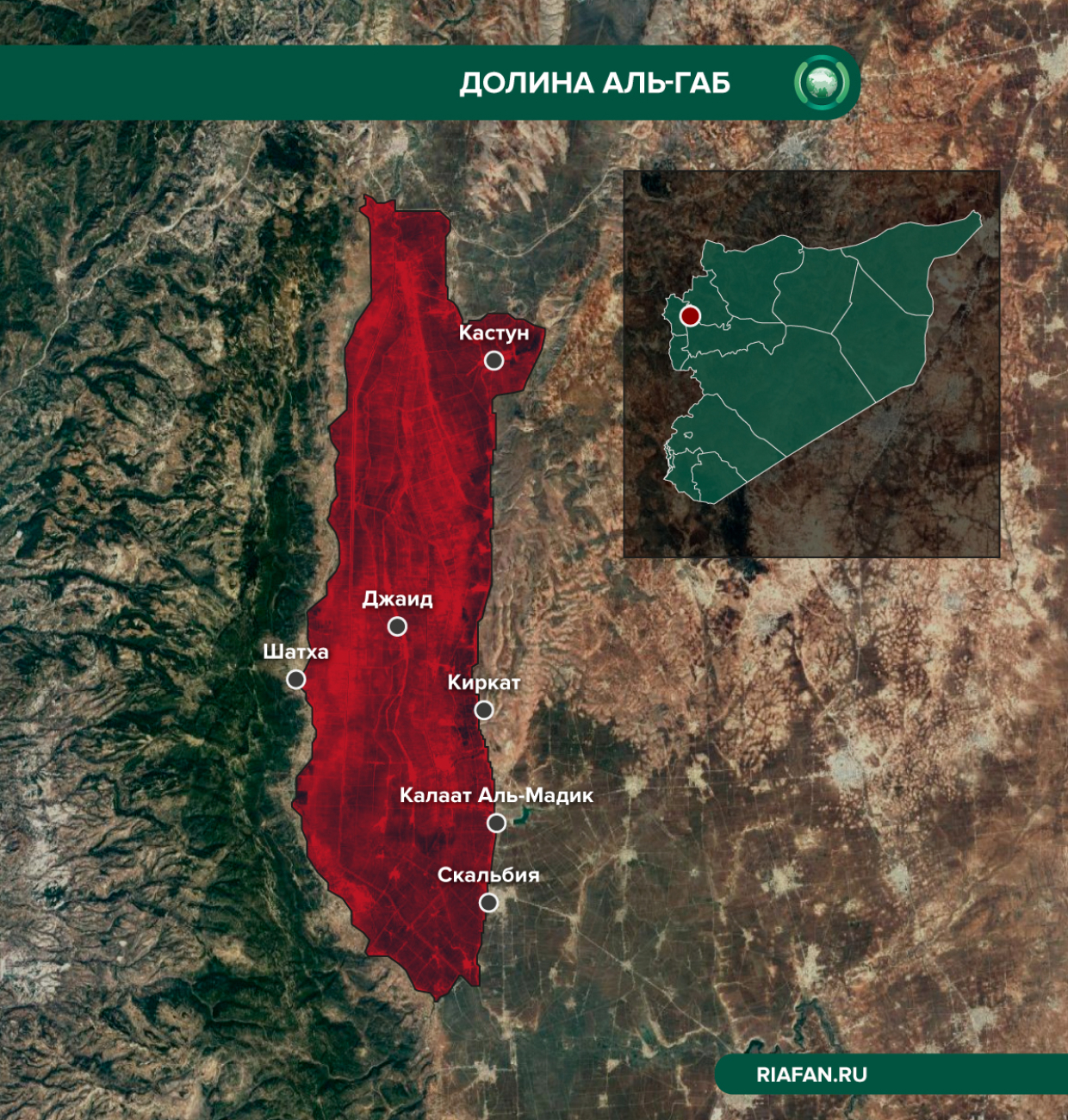 Úrodné údolie Al-Gab na západe sýrskej provincie Hamá je jedným z najväčších poľnohospodárskych regiónov krajiny. Pozemky sú tu mimoriadne bohaté, dokonca aj na pomery Blízkeho východu na „úrodný polmesiac“ - preto sa Al-Gab nazýva „chlebový kôš Sýrie“.