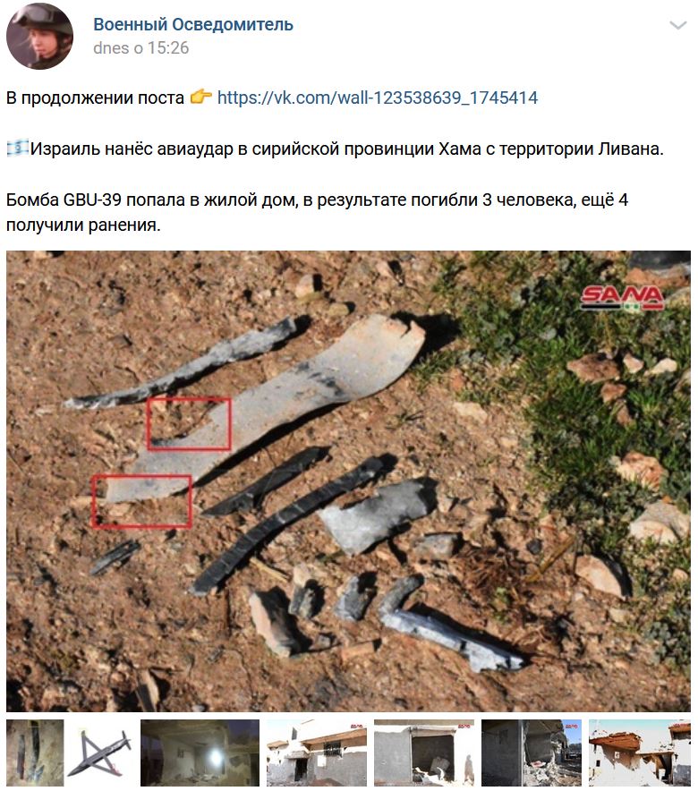 Izraelské letectvo, ktoré zahájilo nálet na sýrske územie, použilo počas náletu americké kĺzavé bomby GBU-39. Svedčia o tom zvyšky streliva nájdené na mieste havárie.