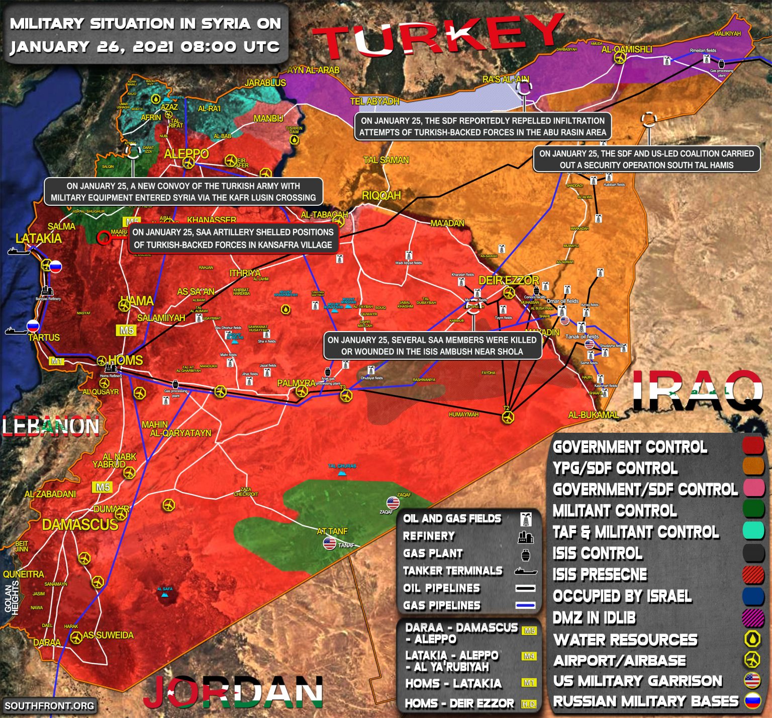 VOJENSKÁ SITUÁCIA V SÝRII 23. JANUÁRA 2021 (AKTUALIZÁCIA MAPY)
