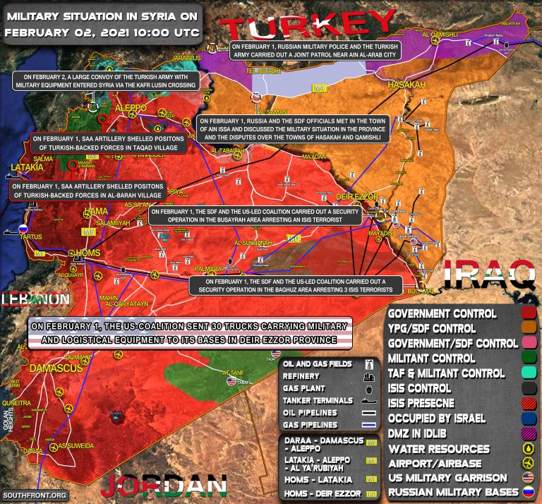 Vojenská situácia v Sýrii 2. februára 2021 (aktualizácia mapy)