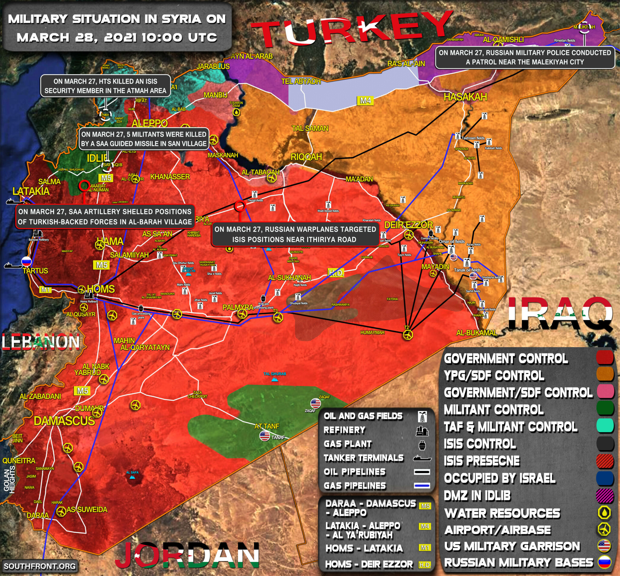 Vojenská situácia v Sýrii 29. marca 2021 (aktualizácia mapy)