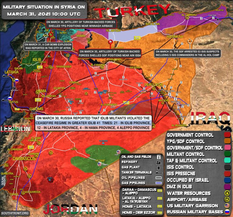 Vojenská situácia v Sýrii 31. marca 2021 (aktualizácia mapy)