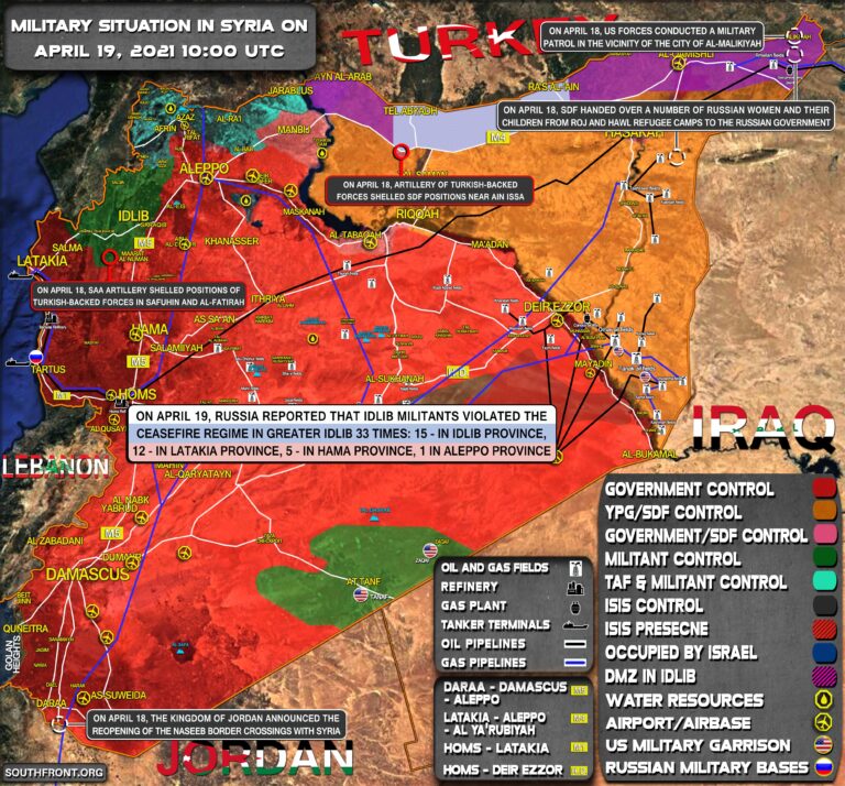Vojenská situácia v Sýrii 19. apríla 2021 (aktualizácia mapy)