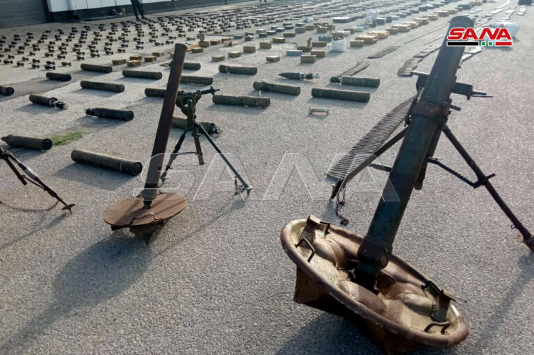 Reportér SANA uviedol, že počas dokončovania čistiacich operácií na zabezpečenie oslobodených oblastí v južnom regióne orgány zložky odhalili veľké množstvo zbraní, munície, rakiet vystrelených z ramien, vrátane rakiet, mínometných granátov, RPG a útočných a obranných granátov , okrem toho rôzne strelivo pre ľahké a stredné zbrane.