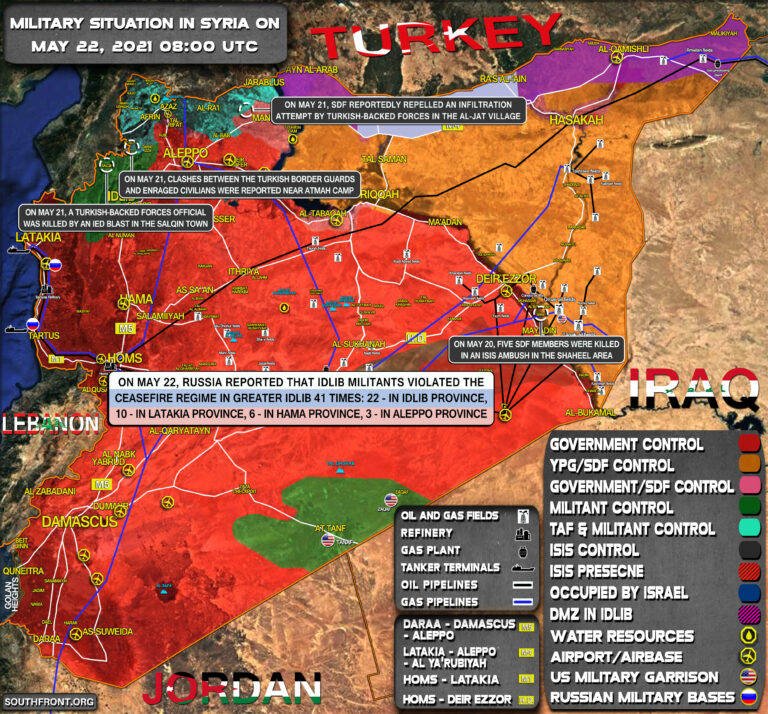 Vojenská situácia v Sýrii 22. mája 2021 (aktualizácia mapy)