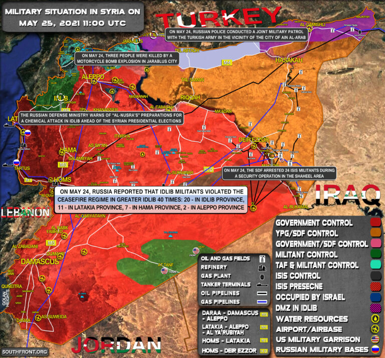 Vojenská situácia v Sýrii 25. mája 2021 (aktualizácia mapy)