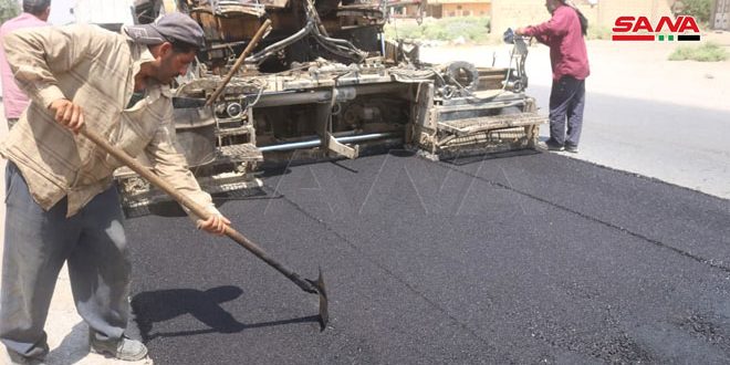 Deir Ezzor, SANA-Generálna spoločnosť pre cesty a mosty začala s realizáciou druhej fázy projektu údržby a obnovy cesty al-Mayadeen -al-Bukmal Road.