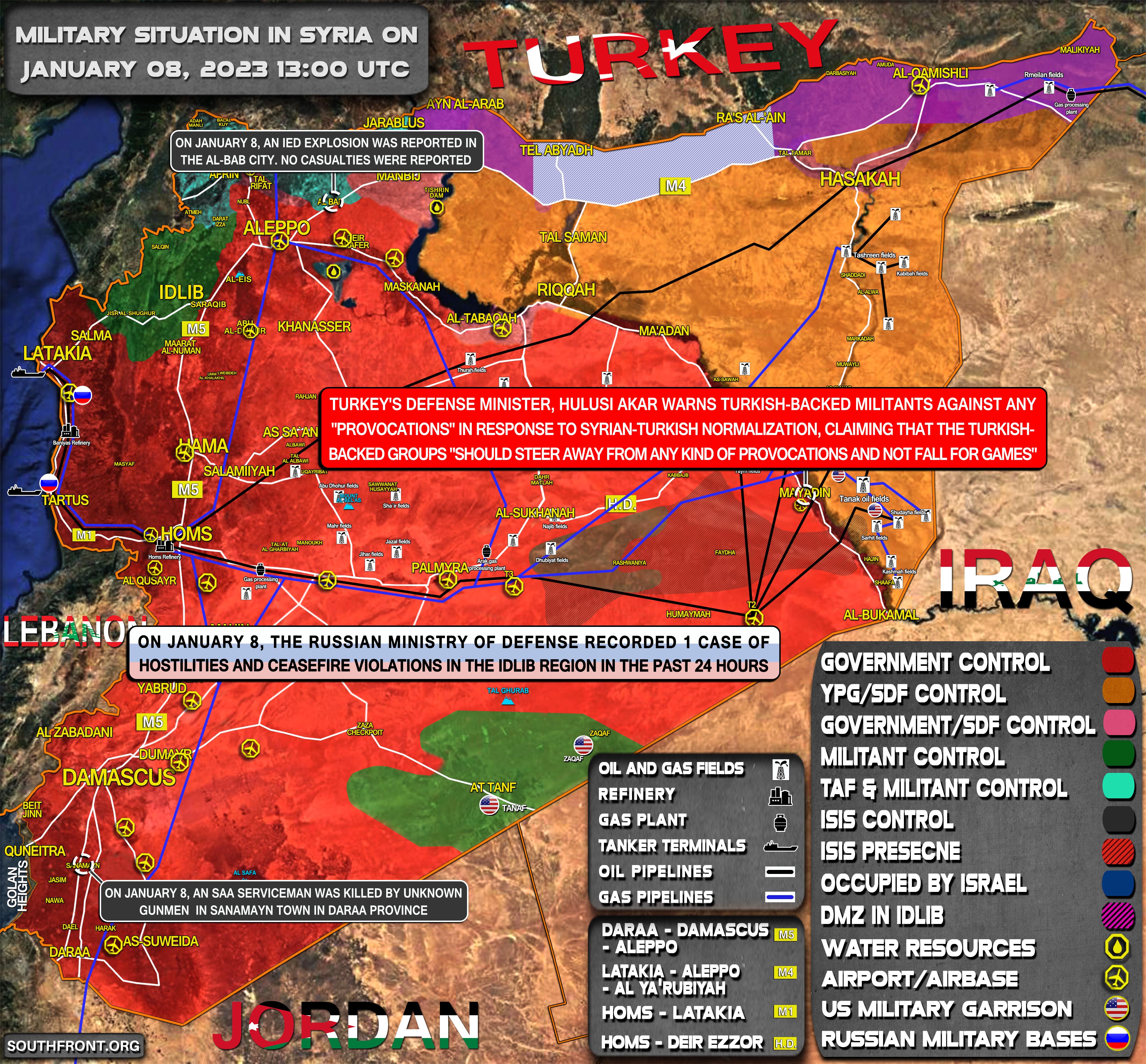Vojenská situácia v Sýrii 8. januára 2023 (aktualizácia mapy)