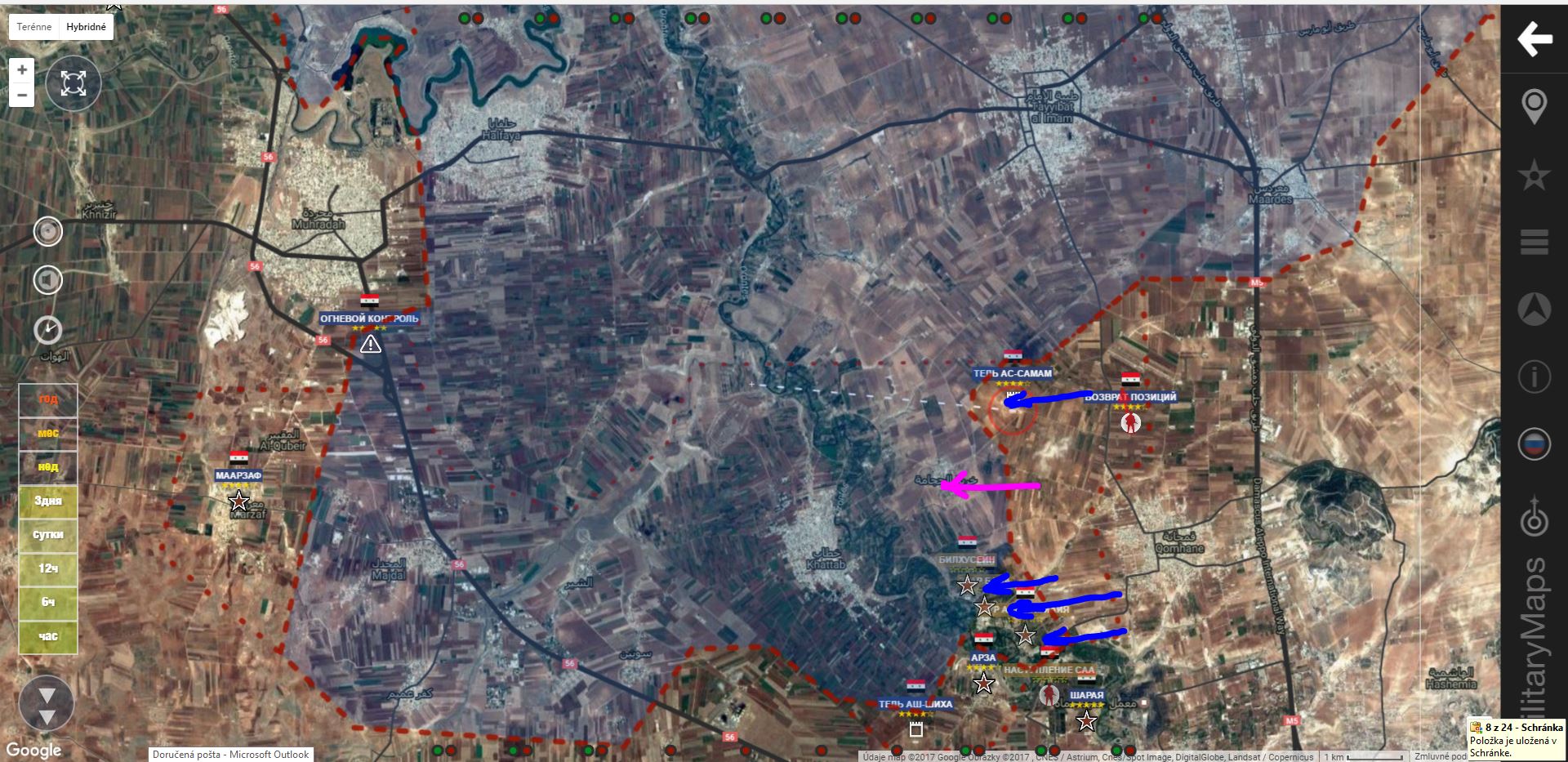 IgorT píše: ↑30 bře 2017, 16:36 S.Hamá. SAA+ získala Zur Al Kasaju, Zuar Balu a Bilhusaajnu. Severne ležiaci Tal As Samam menil majiteľa, teraz ho drží SAA+. 30.3-0.JPG https://twitter.com/QalaatAlMudiq/statu ... 9959287810 https://twitter.com/NatDefFor/status/847447324464791554 https://twitter.com/MIG29_/status/847382969215877120