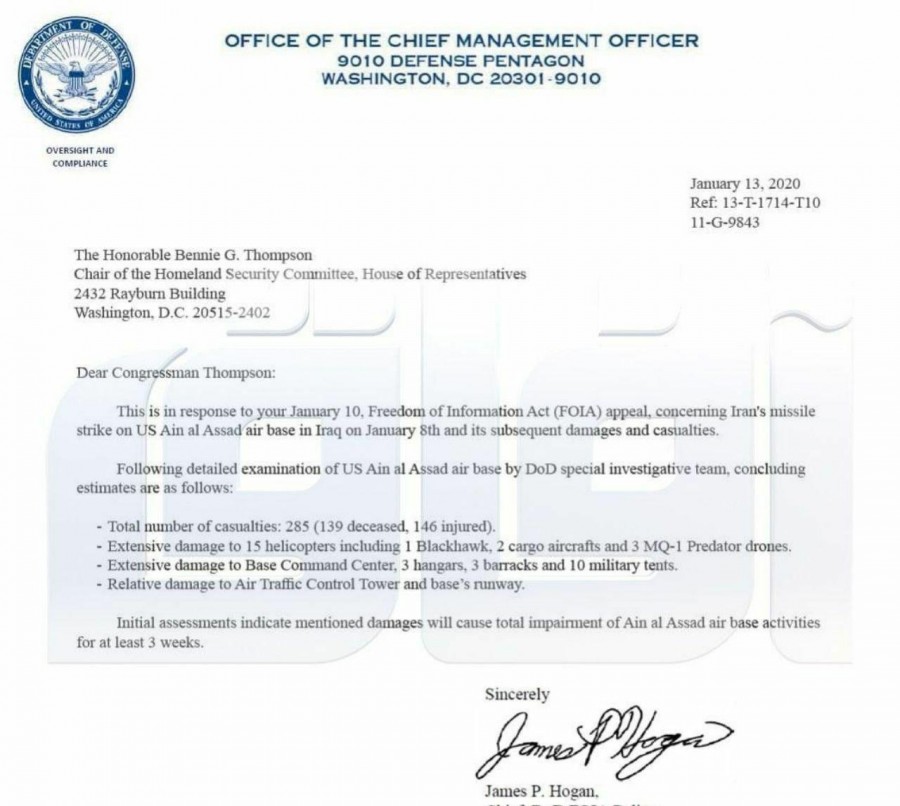 Podľa tohoto dokumentu by mal byť výsledok iránskeho útoku na základňu al asad v iraku: