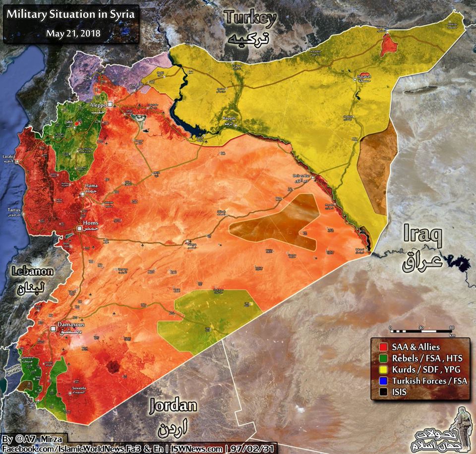 Daraa. Do oblasti prišli značné posily SAA+, doplnili sa stavy 9., 5. a 15. divízie, ktoré sa nachádzali v provincii Daraa, prichádzajú 4. obrnená divízia spolu s republikánskou gardou a "Tiger Force" .