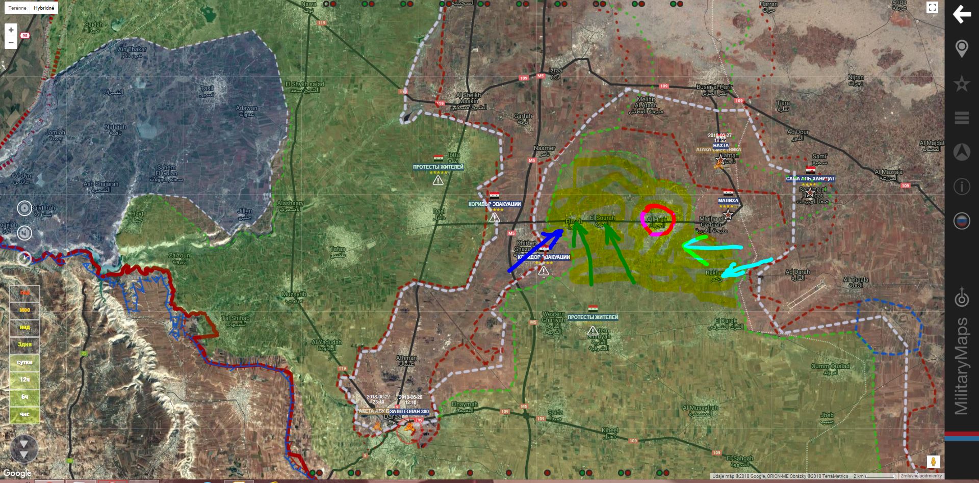 Počet náletov v južnej Sýrii dnes ráno prudko poklesol. Niekoľko miest vyjednáva o kapitulácii (medzi nimi Ibta a Karak). Boje v Daraa ....