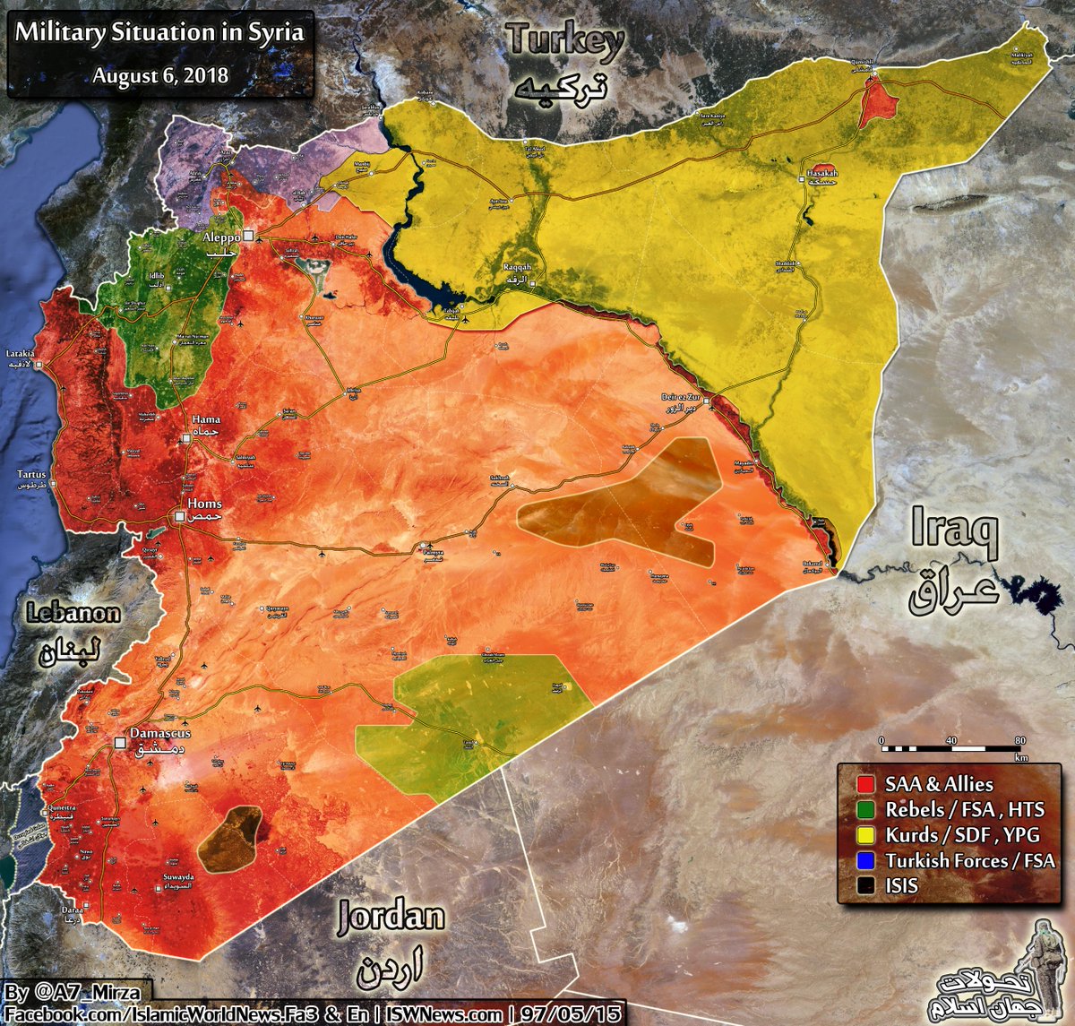 6. srpna 2018. Vojenská situace v Sýrii. Kurdské útvary nabídly syrské armádě pomoc
