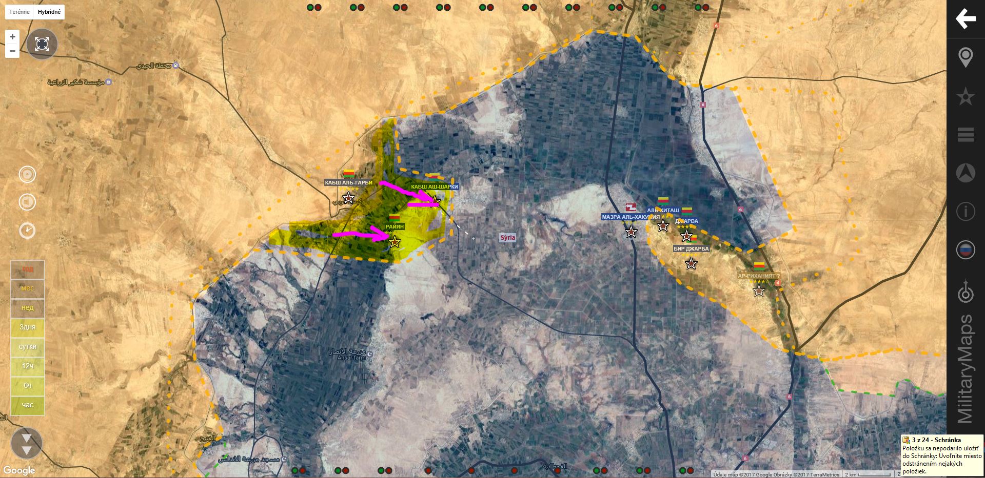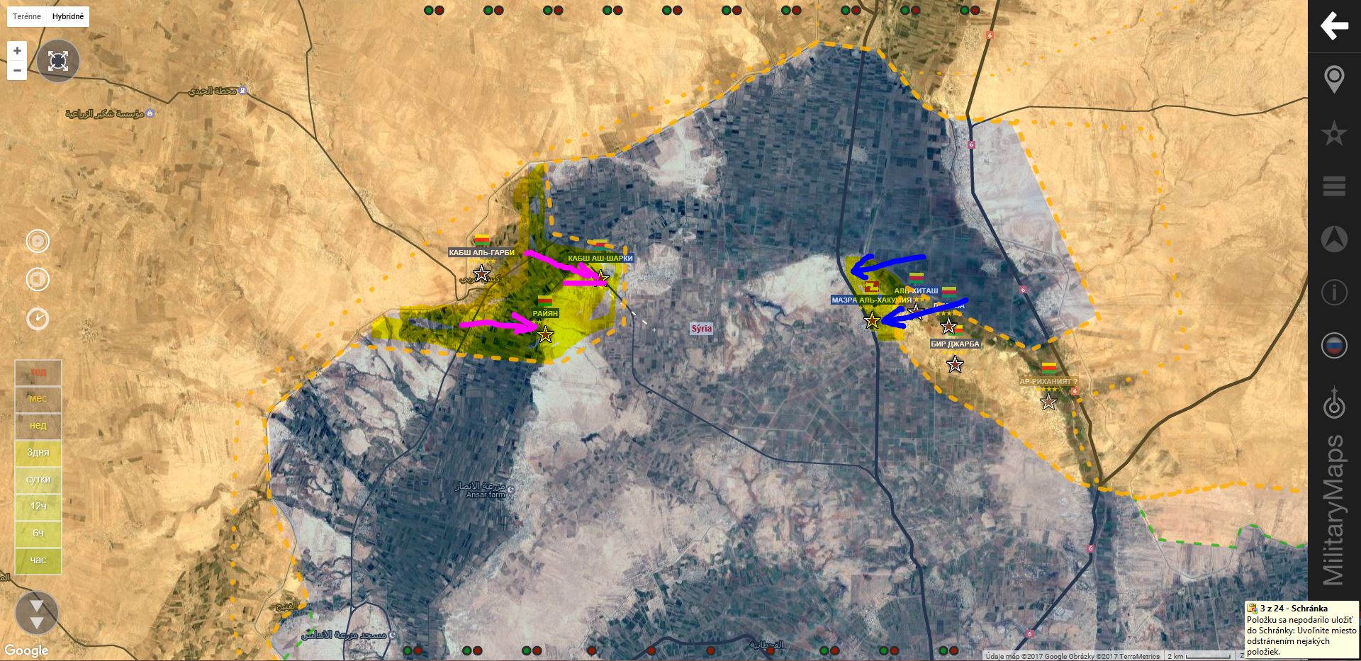 Rakká. SDF+ útočí v smeroch Mazra a Kabš Al Garbi. Na základe prdošlých operácií, by to mohlo naznačovať vytvorenie kotla v severnej časti územia ISIS.