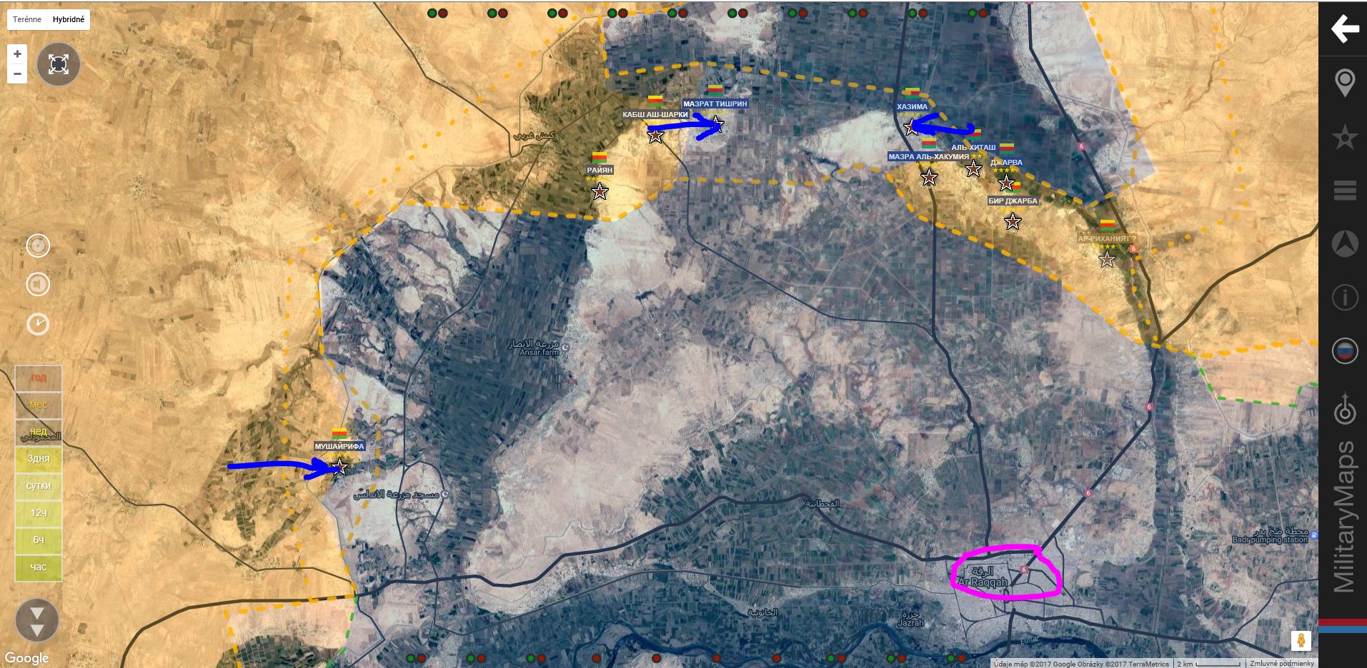 Rakká. SDF+ získali Mušarfiju a na severe Mazrat Tishrin a Hazimu, čím uzatvorili kotol na severe územia ISIS.