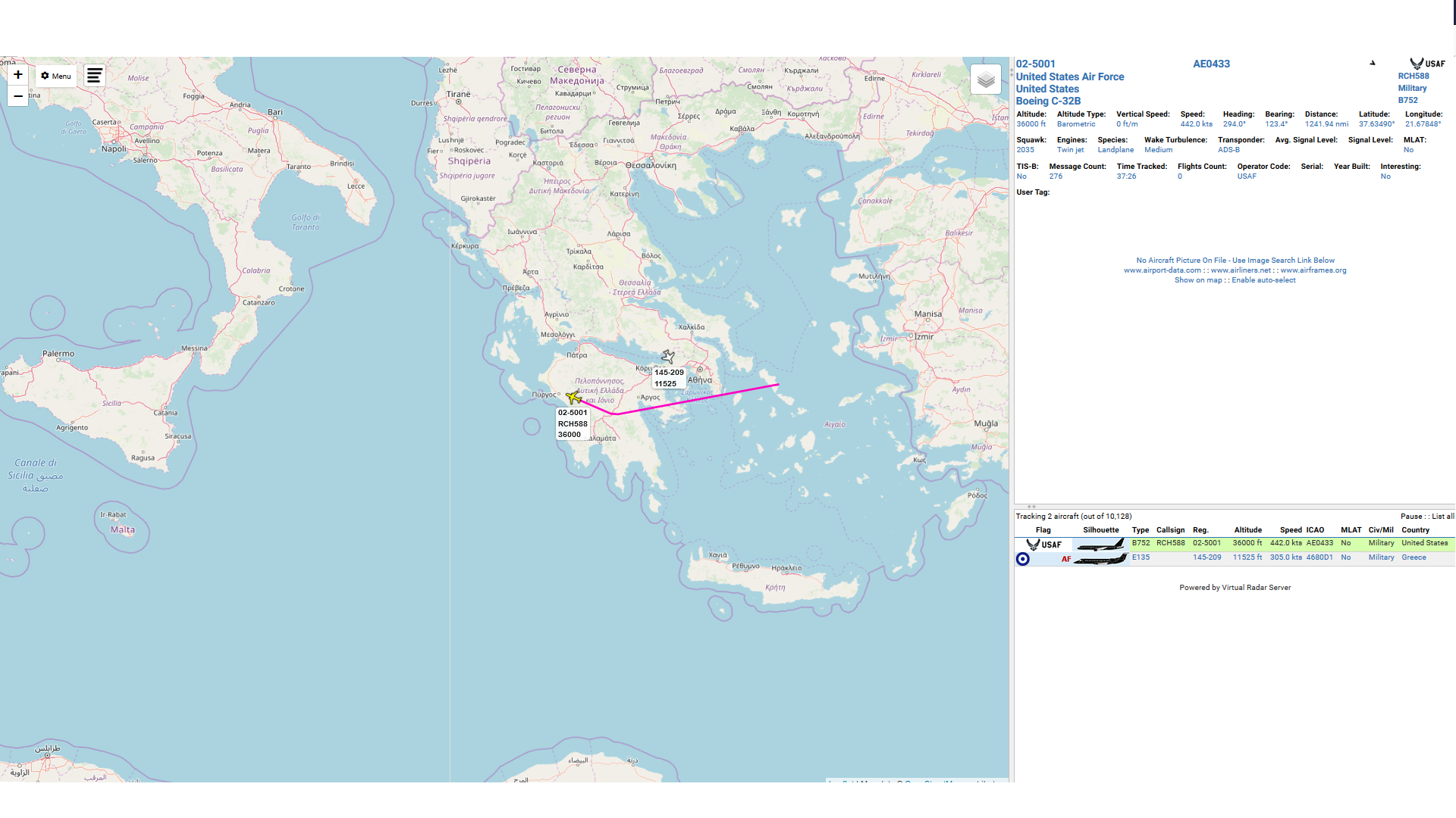 Někdo v tom ale letí z USA (vzlétl z Pope Army Airfield), protože v Rota přistál dnes v 5:0UTC