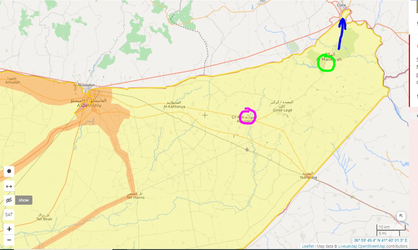SAA je nasadená do (vrátane) Ayn Diwar severovýchodne od Al-Malikiyah na hranici s Tureckom!