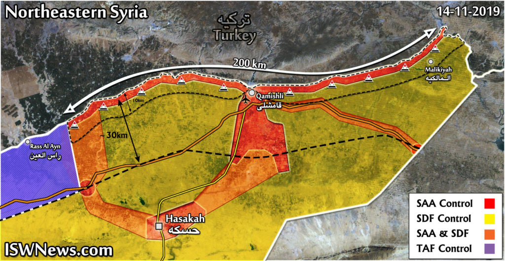 Podľa štátnej spravodajskej agentúry budú jednotky SAA rozmiestnené medzi mestom al-Jawadiyah a mestom al-Malikiyah.