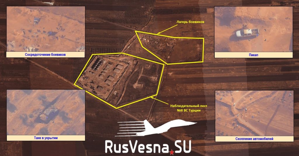 Tureckom podporované militantné skupiny úmyselne vytvárajú pozície v blízkosti tureckých pozorovacích staníc v de eskalačnej zóne Idlib a používajú tieto pozície na obstrel sýrskej armády. RusVesna uviedla obrázky z dronov.