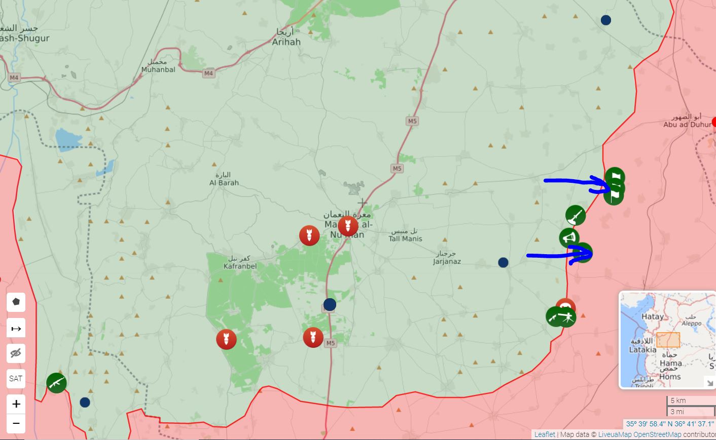 - Sýrska arabská armáda (SAA) sa pokúsila vo štvrtok po relatívne pokojnom týždni na kabanskom fronte opäť pokročiť vo vylepšení svojej pozície v severovýchodnej k Latakii. Po krátkej bitke s džihádistickými povstalcami Hay'at Tahrir Al-Sham (HTS) a Turkestánskej islamskej strany (TIP) však bola sýrska arabská armáda nútená zastaviť útok.