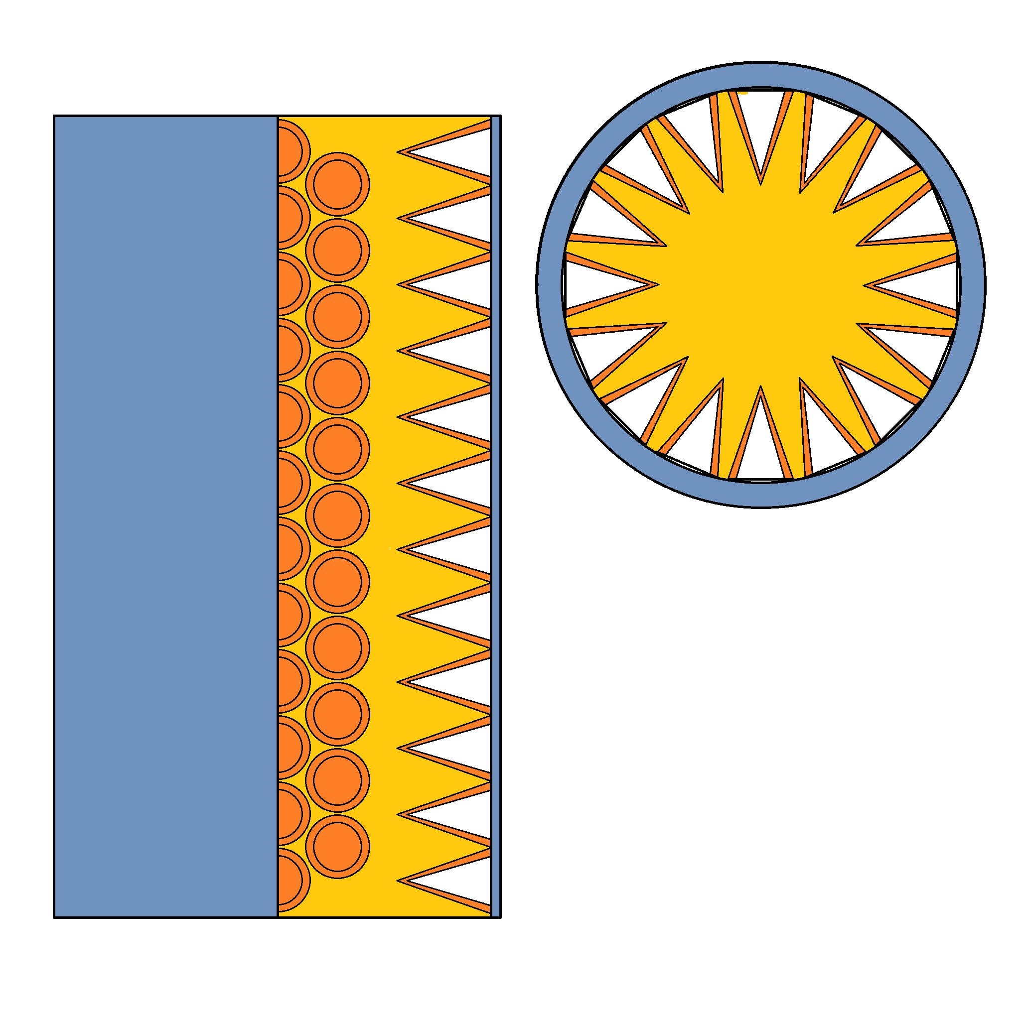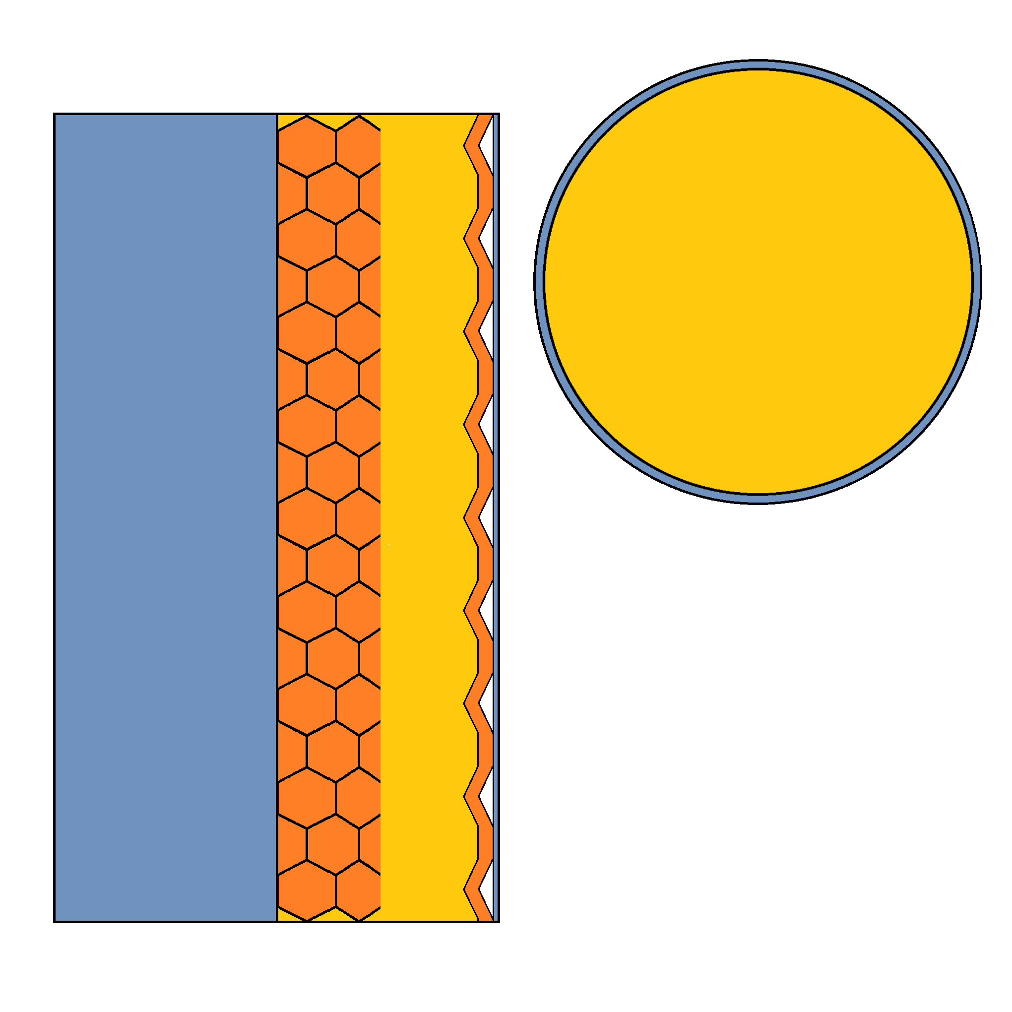 homogenny plášť veľkej hrubky, nálož s povrchovými drážkami - plášť je nad drážkami trhaný na dlhé črepiny