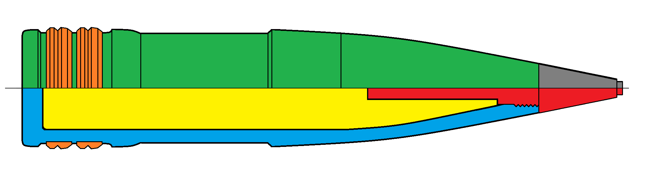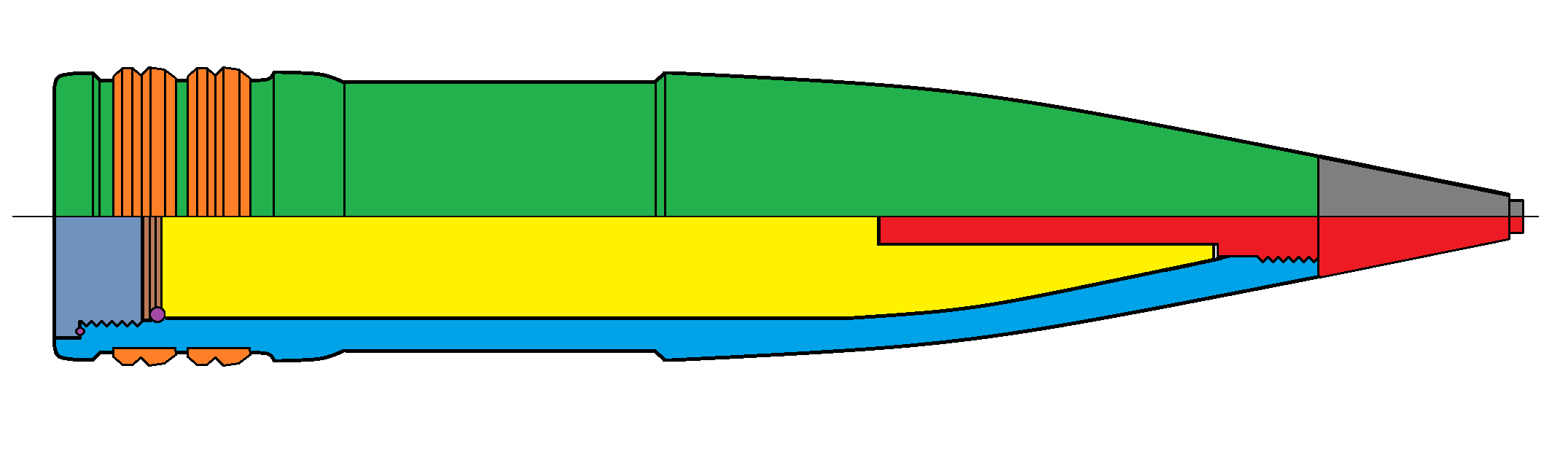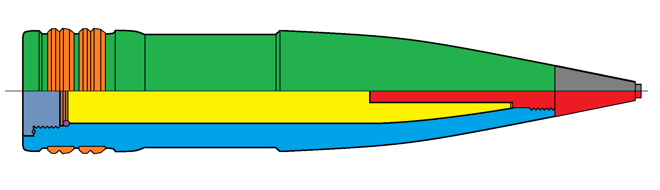 - Granát pre streľbu proti ponorkám a torpédam - kalich v prednej časti zabraňuje odrazu od vodnej hladiny