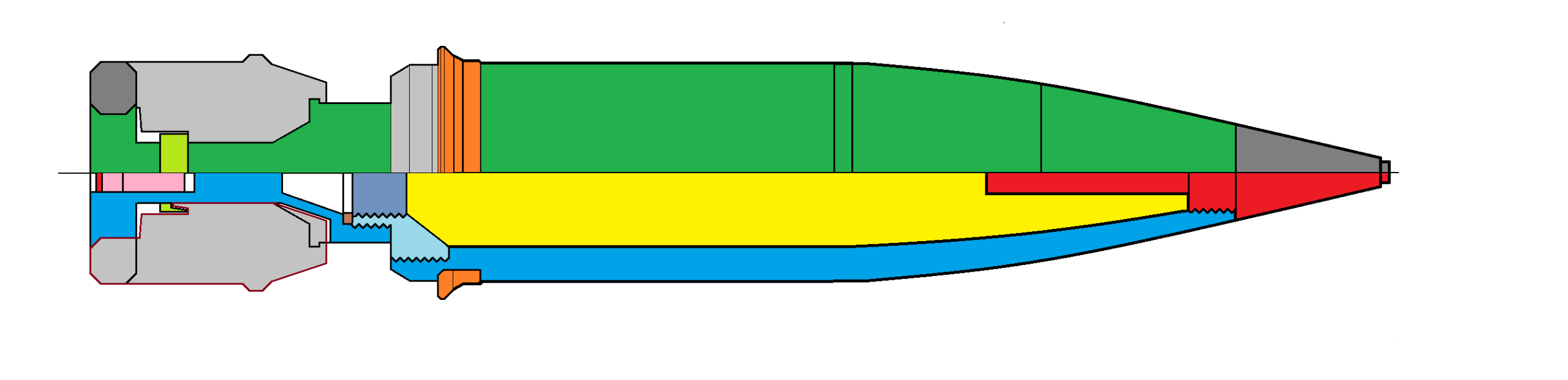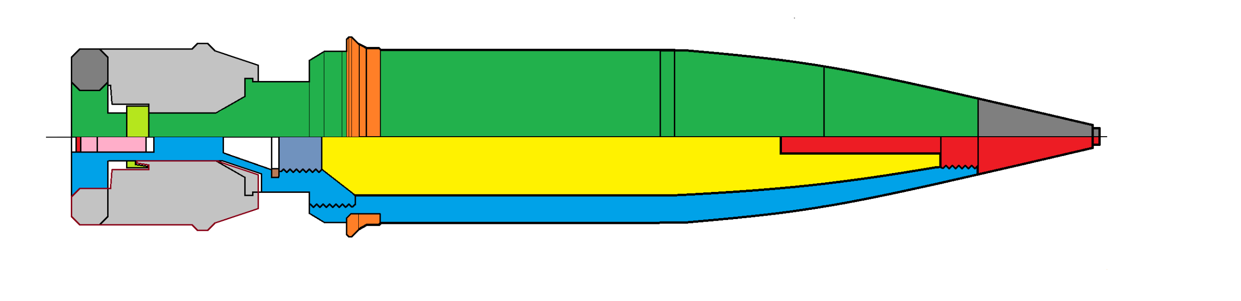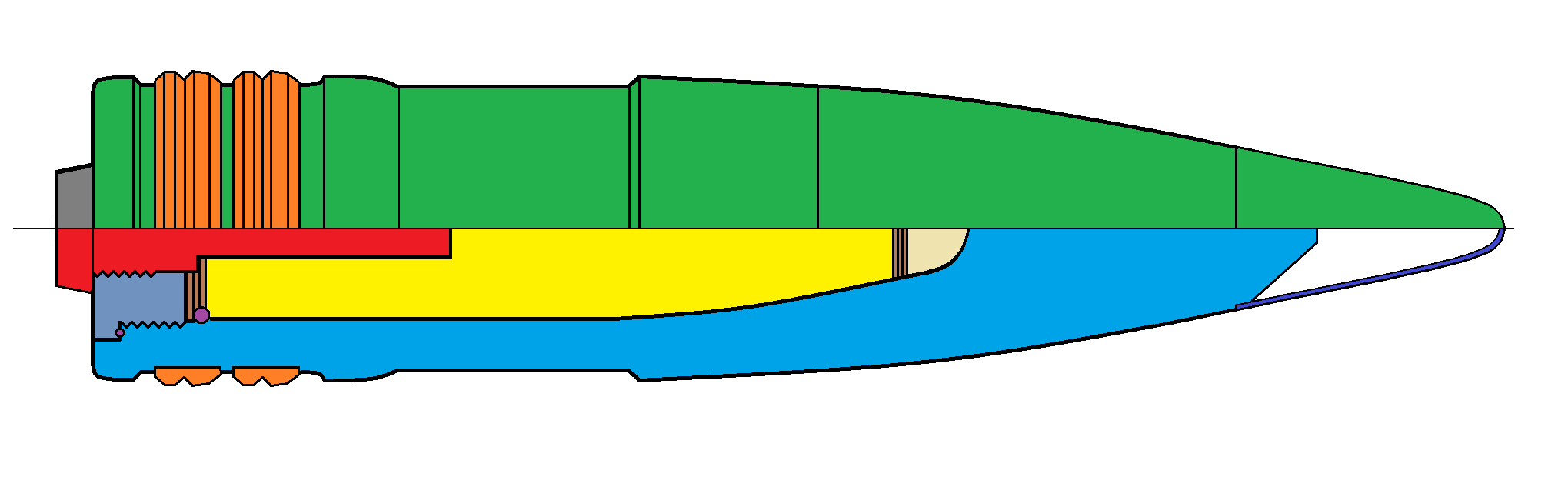- Granát pre streľbu proti ponorkám a torpédam - kalich v prednej časti zabraňuje odrazu od vodnej hladiny
