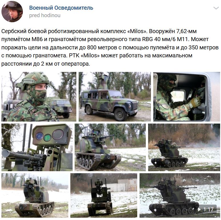 Srbský bojový robotický komplex Milos