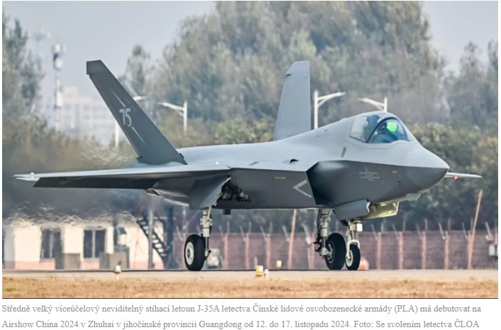 Nová čínská neviditelná stíhačka J-35A má debutovat na Airshow China 2024, podle úterního oznámení letectva Čínské lidové osvobozenecké armády (PLA).