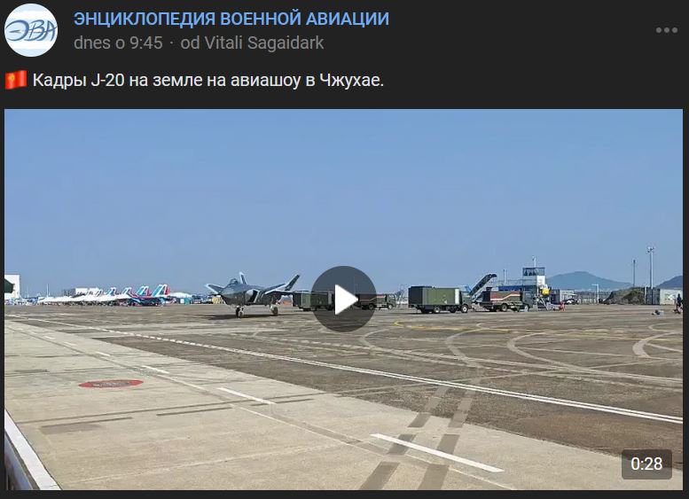Zábery lietadla J-20 na zemi na leteckej výstave v Ču-chaji