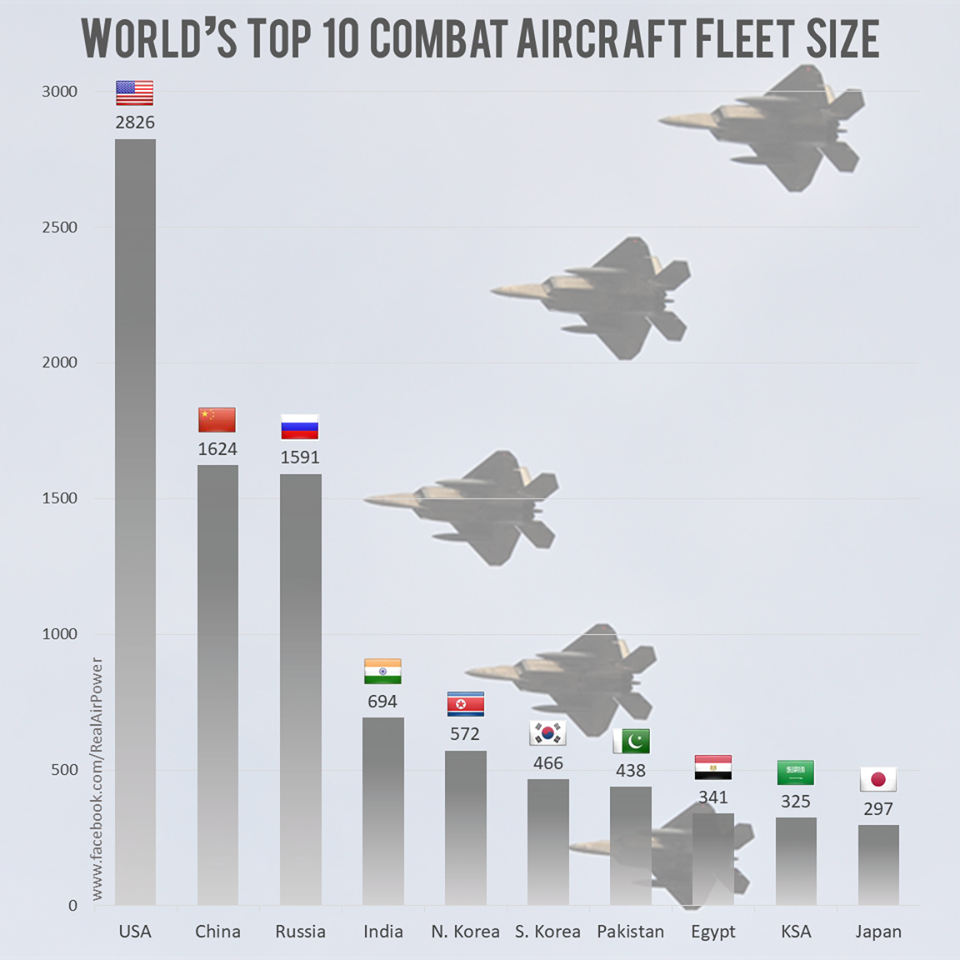 US skupina "Air Power" na FB "facebook.com/RealAirPower" vo štvrtok 05.09.2019 na FB stánku https://www.facebook.com/RealAirPower/p ... &__tn__=-R umiestnili svoj graf podľa ich vlastnej metodiky a im známym údajom, koľko má daná krajina počet lietadiel vo svojom letectve (prvá 10-tka krajín):