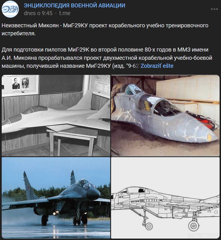 Na foto 3 - umelecká kresba podľa nerealizovaného projektu MiG-29KU. Zdroj https://vk.com/wall-173678697_340886 z 30.09.2023 Alch.
