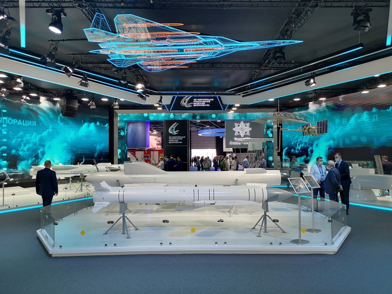 To je ona, nová varianta "delší" R-77 s prodlouženým dosahem (pravděpodobně Izd. 180 alias R-97, pokud je to R-97 z toho simulátoru Su-57, tak tam má dosah 160km na vstřícný cíl letící 800km/h na výšce 3000m, při Su-57 na rychlosti 1030km/h a výšce 4400m, kdyby to bylo na velké výšce a velkých rychlostech sblížení, tak dosah může být klidně i hodně přes 200km bezpečně).