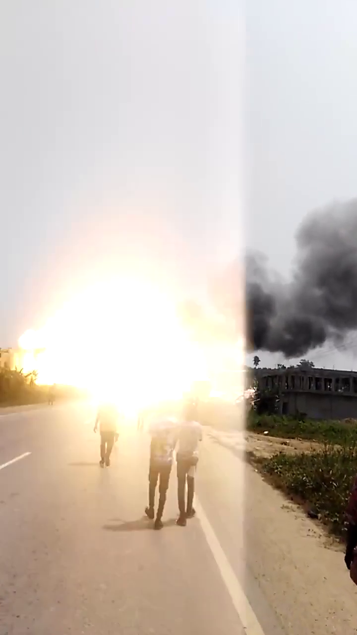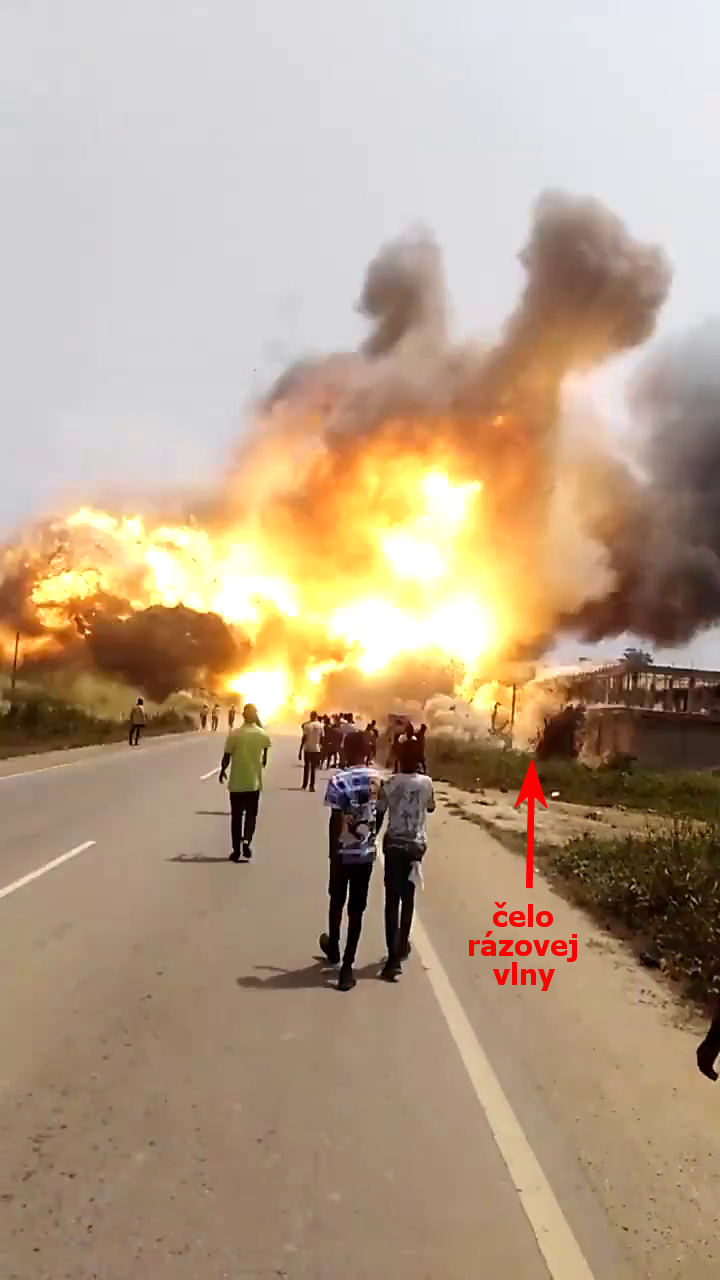 ↑ Samotný výbuch po požiari nákladného auta naloženého výbušninami: