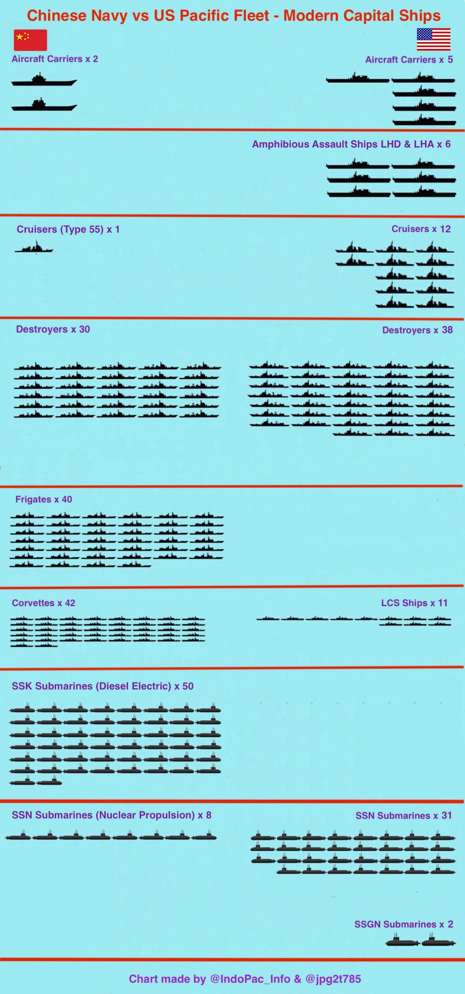 Porovnanie námorníctva Číny a USA (iba Pacifická flotila) v počte jednotiek