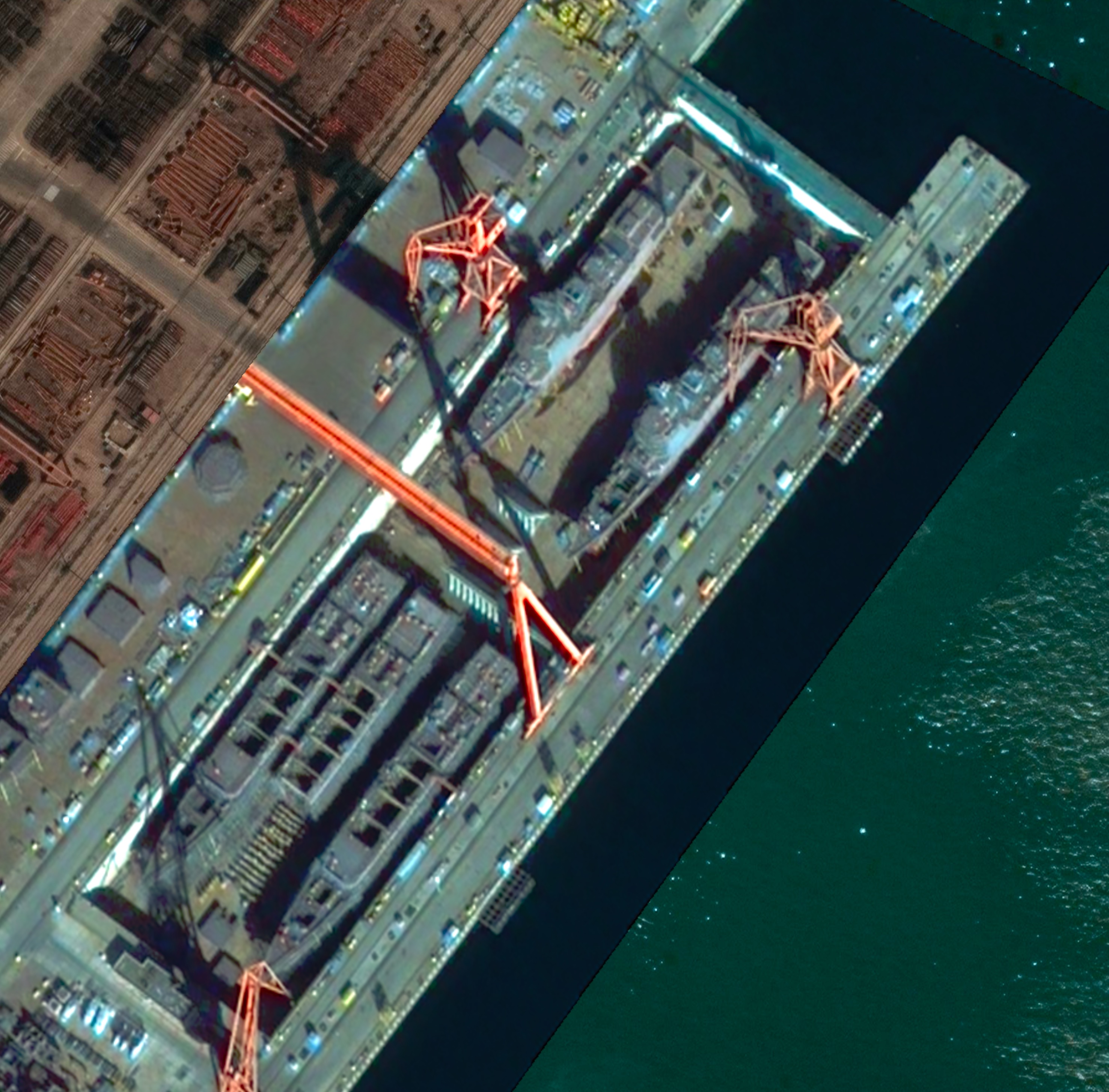Cenzuře neunikají ani fotografie, takže asi nejlepším zdrojem stavu kompletace jsou ne moc ostré snímky ze satelitní sítě Sentinel.